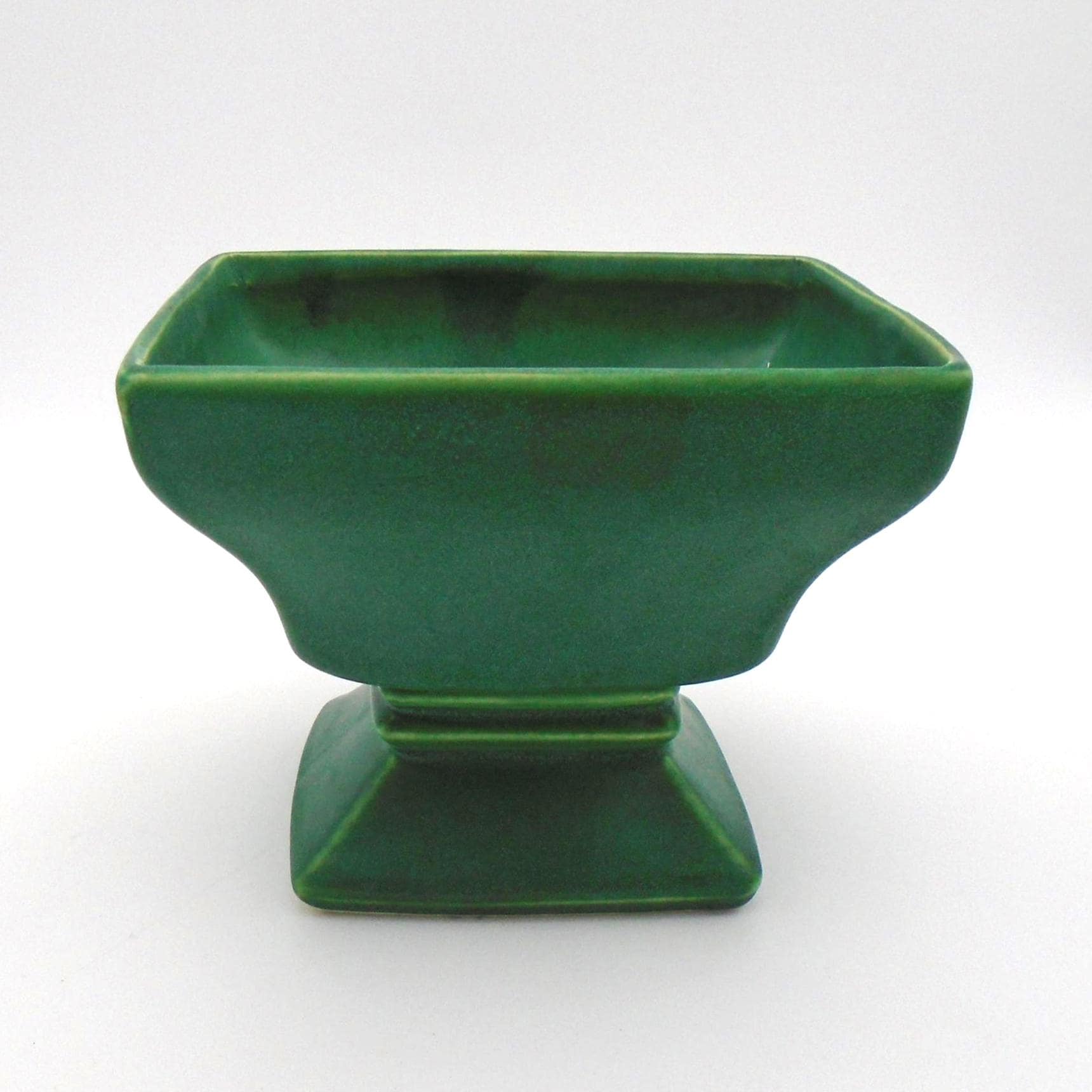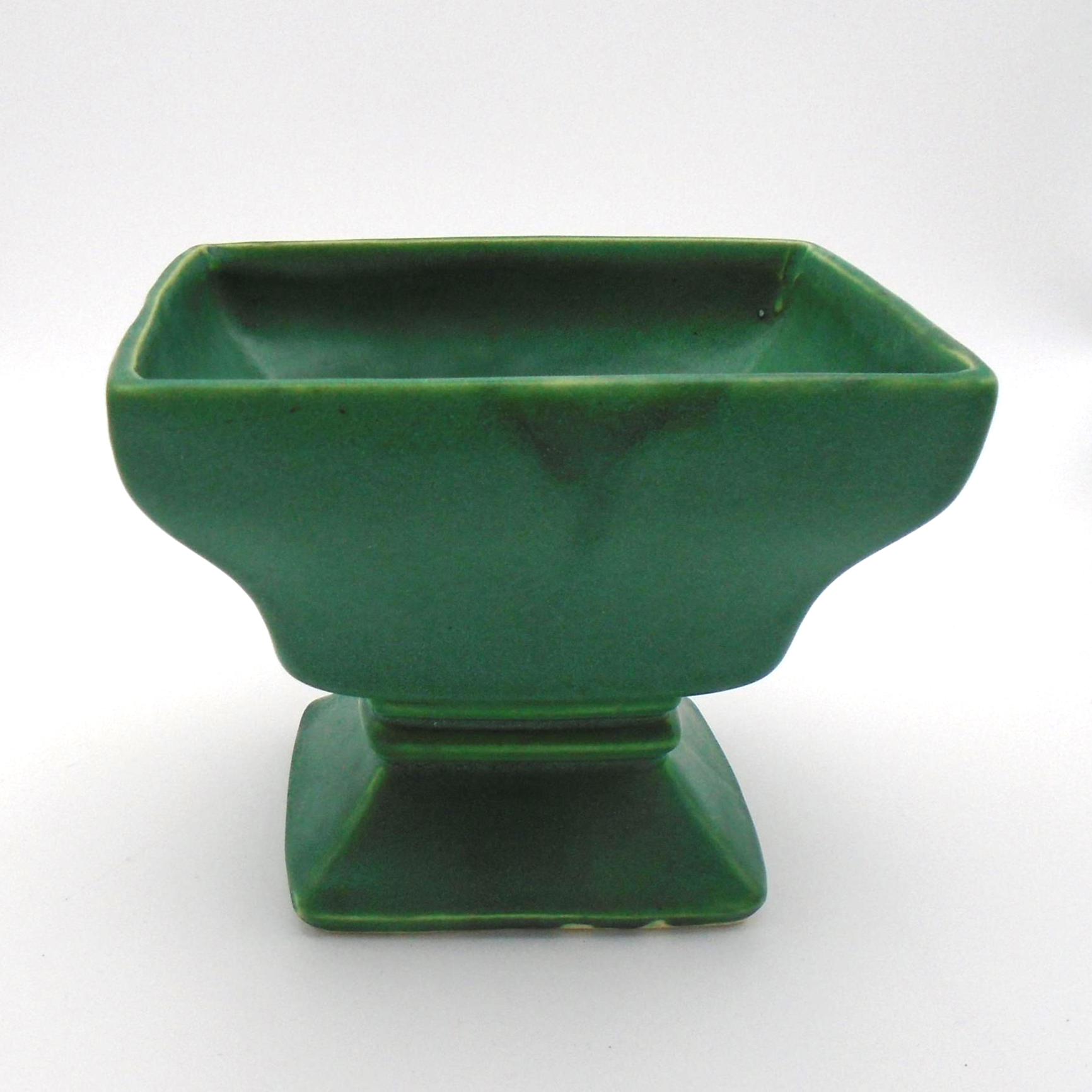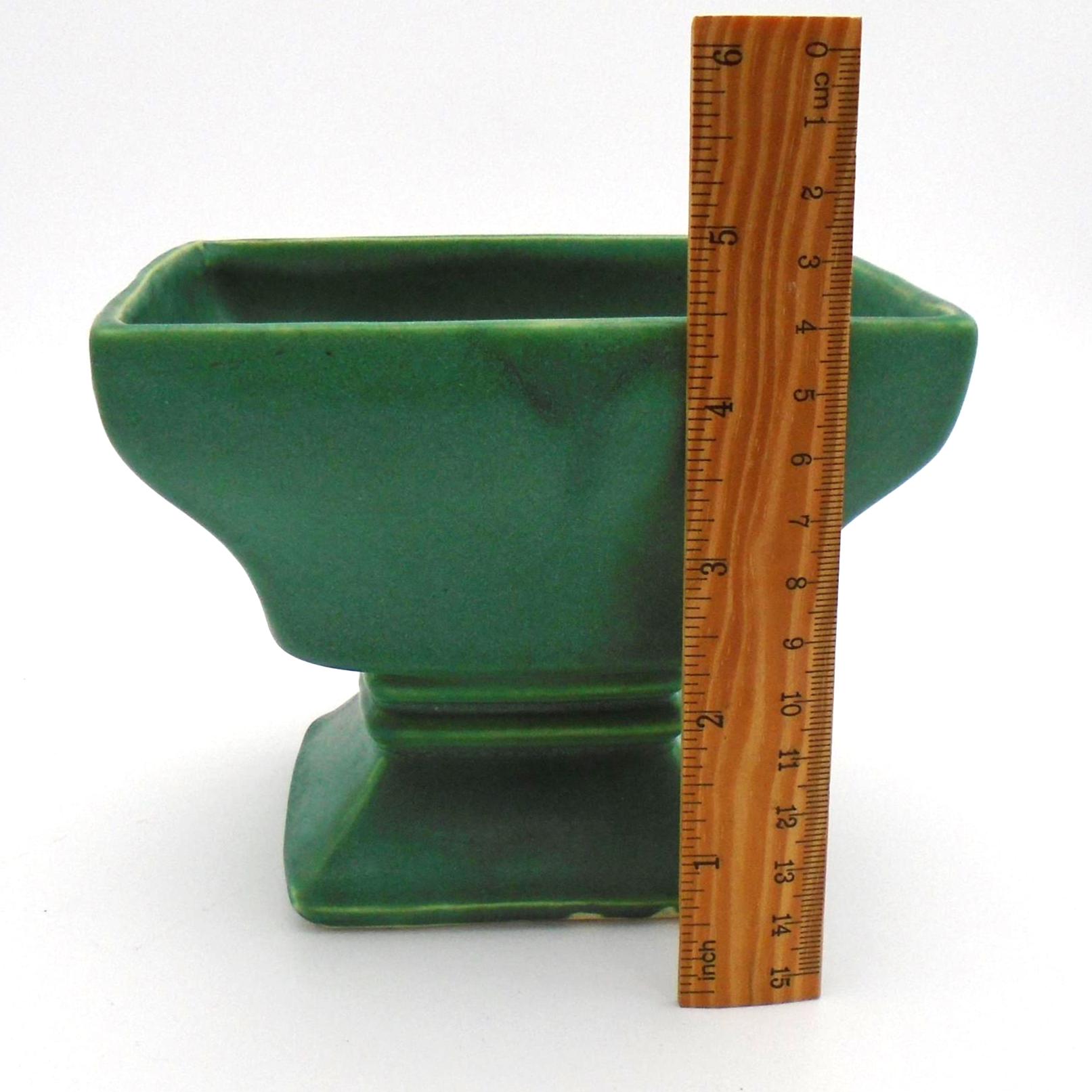 Produced by McCoy Pottery, a well-known American pottery company that operated from 1910 until 1990 in Roseville, Ohio. This Art Deco/MCM matte green pedestal planter is in excellent condition, no chips, cracks or crazing. Minor use, and presents extremely well. Measures approximately 4 1/2" tall x 5 1/2 long x 4 1/4" wide.