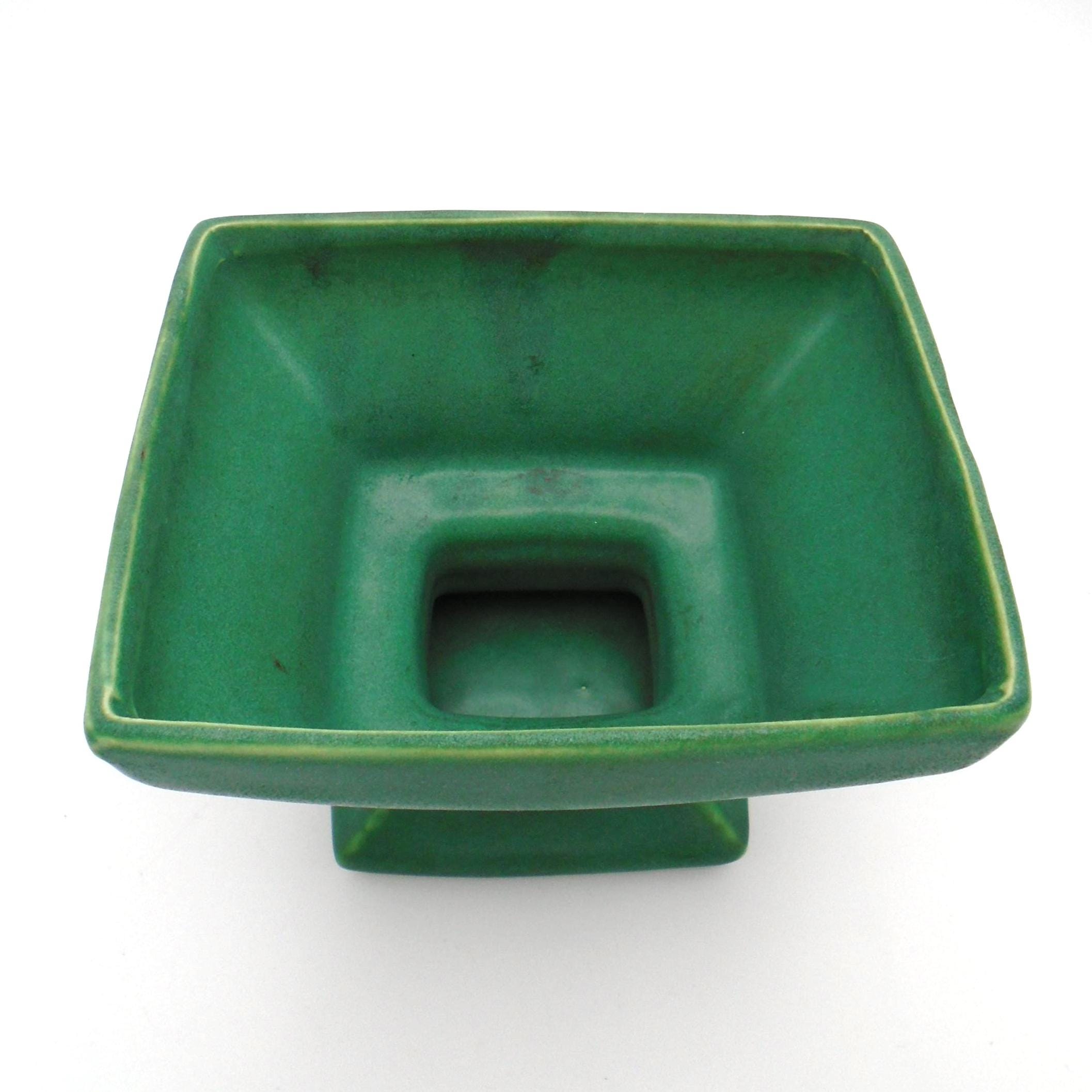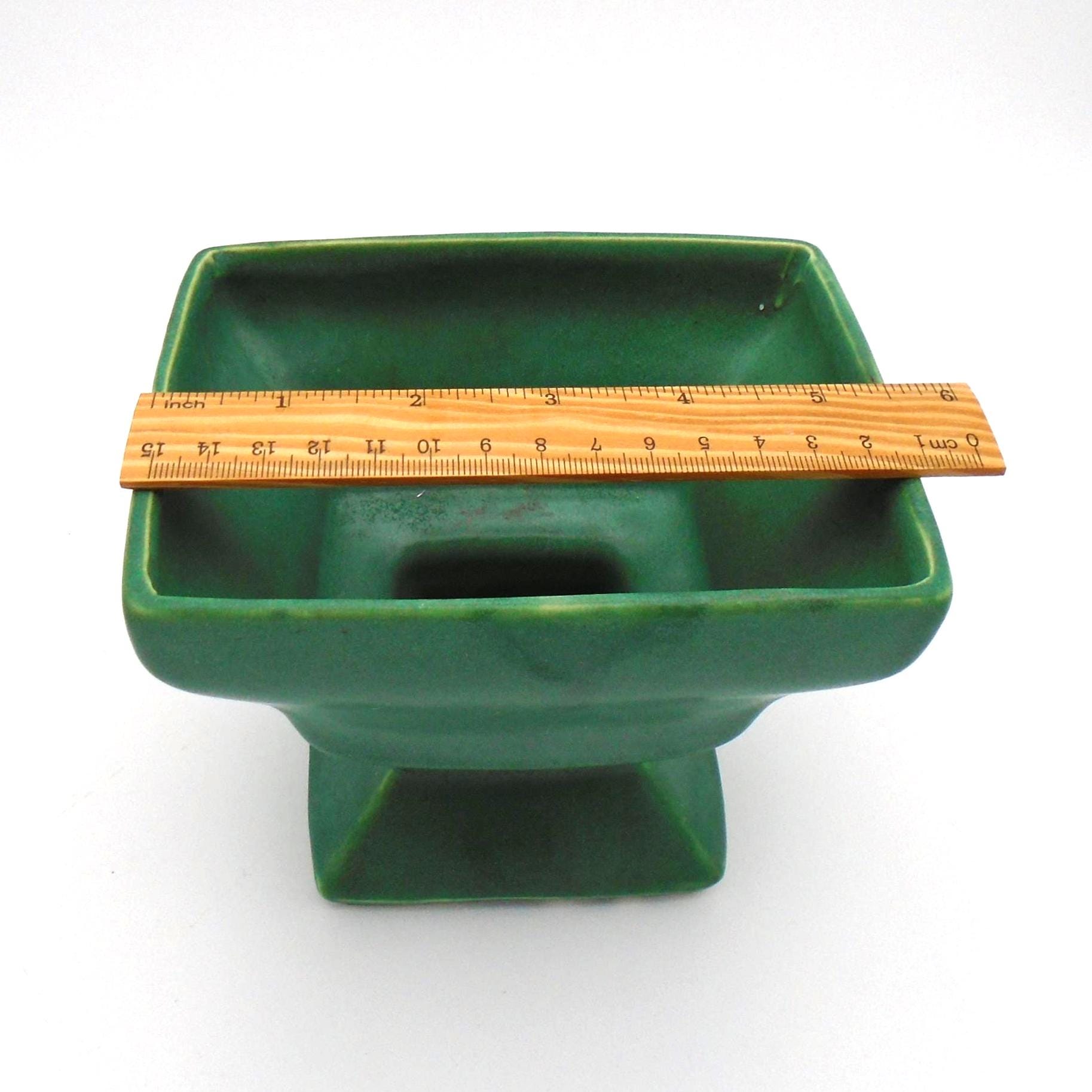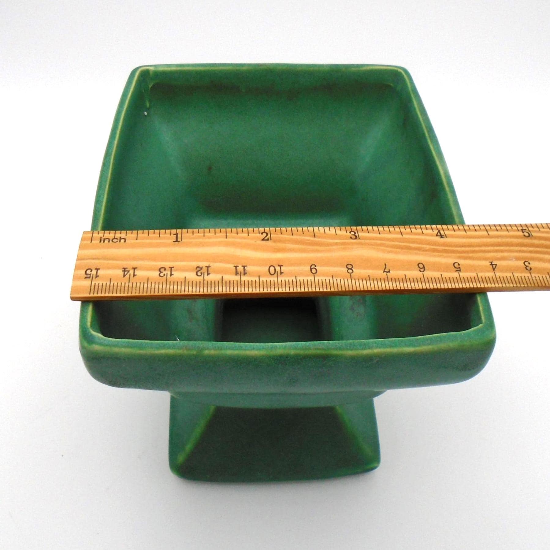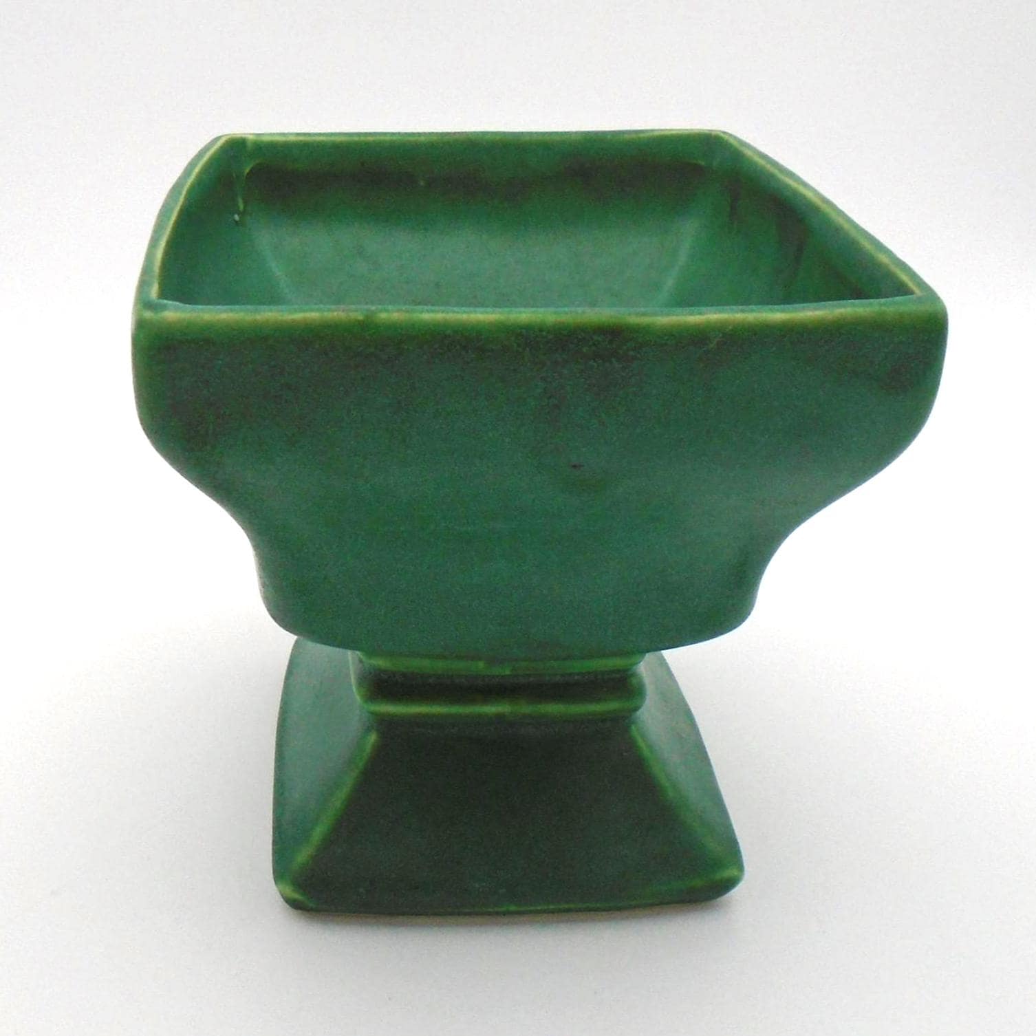 Produced by McCoy Pottery, a well-known American pottery company that operated from 1910 until 1990 in Roseville, Ohio. This Art Deco/MCM matte green pedestal planter is in excellent condition, no chips, cracks or crazing. Minor use, and presents extremely well. Measures approximately 4 1/2" tall x 5 1/2 long x 4 1/4" wide.