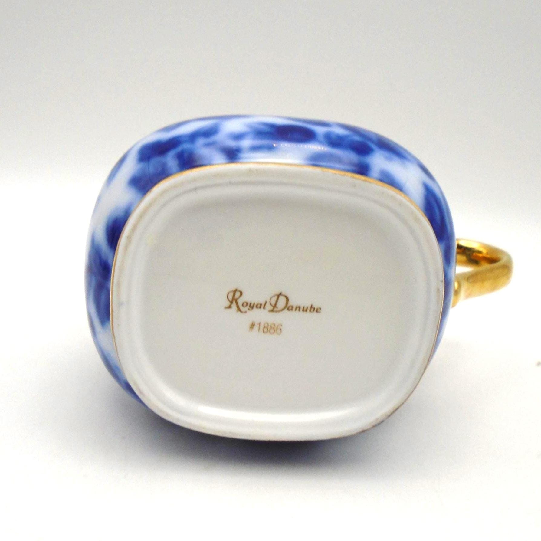 This fabulous cup and saucer is marked "Royal Danube #1886" in gold on the bottom. Add this charming cup and saucer to your own collection or blue and white display. Makes a fabulous gift or simply a decor piece for your own dining table or display. Highly collectible,