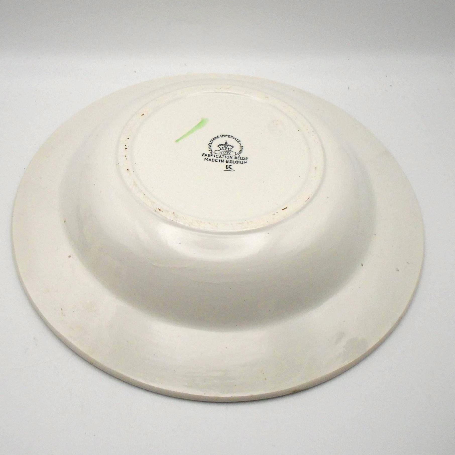 Carversville Home offers 3 of these bowls for purchase. They are on very good condition and are stamped on the bottom " Nimy Manufacturer Imperiale Royale, Made in Belgium". Nimy pottery, from the region of Nimy-les-Mons in Belgium, has a history from 1798 to its closure in 1951. It rose to prominence in the 19th and early 20th centuries, producing earthenware, faience, and majolica in styles. The pottery became known as the Manufacture Impériale et Royale de Nimy and is now a cherished part of Belgium's ceramic heritage.