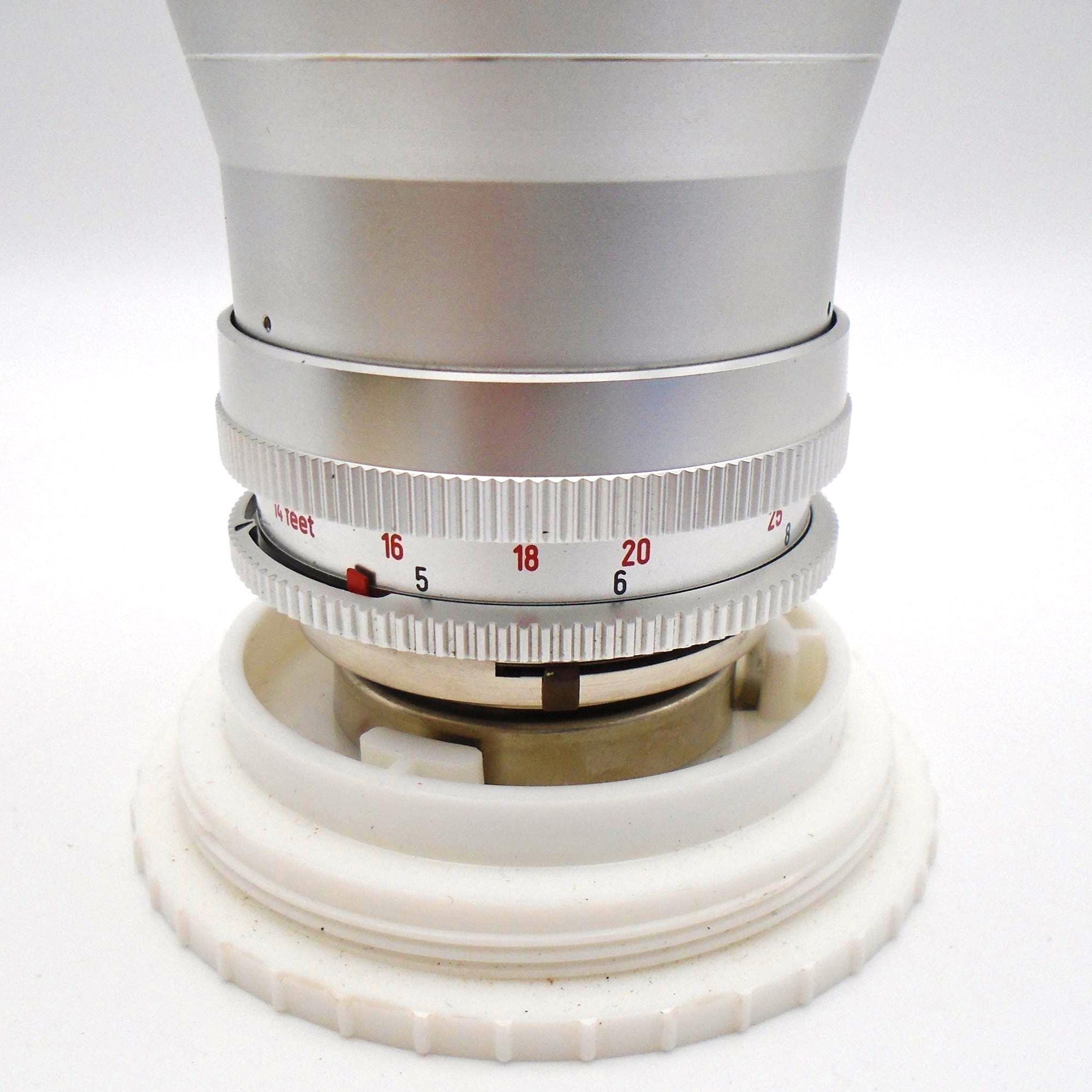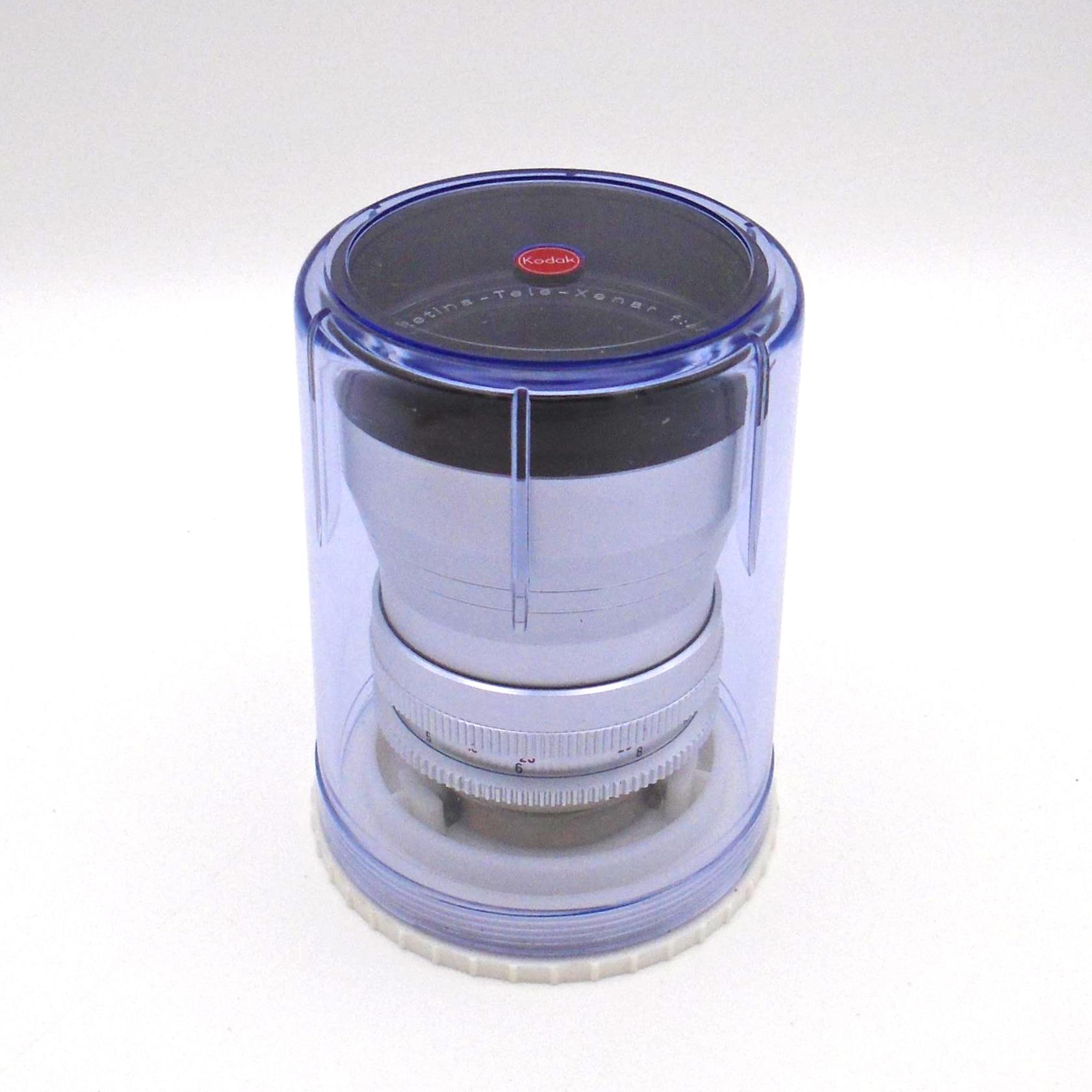 The Schneider-Kreuznach 135mm f/4 Retina-Tele-Xenar telephoto lens is in excellent used condition, lens is clear, minor use if any. No attempt has been made to clean or alter its current state. Comes with screw-on protective "bubble" plastic case with Kodak logo and original box. Priced accordingly for quality and overall condition. Manufactured between 1959 - 1974, based on serial number 8317489, this lens was manufactured between March 1963 - February 1964