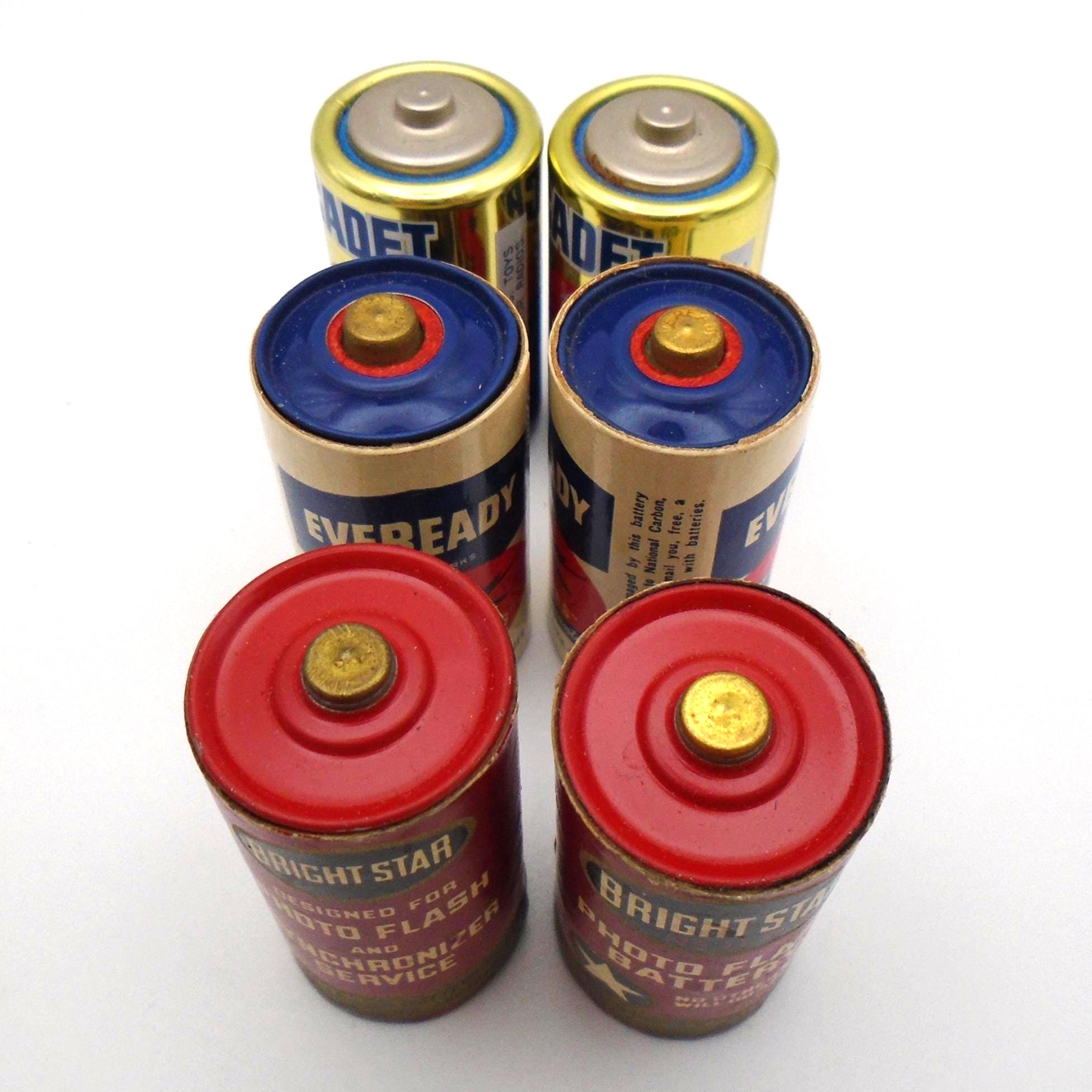Each is in good overall condition, showing some wear and discoloration. These should be considered collectibles and are not expected to have or retain a charge. Great for the collector, as vintage props or decor.