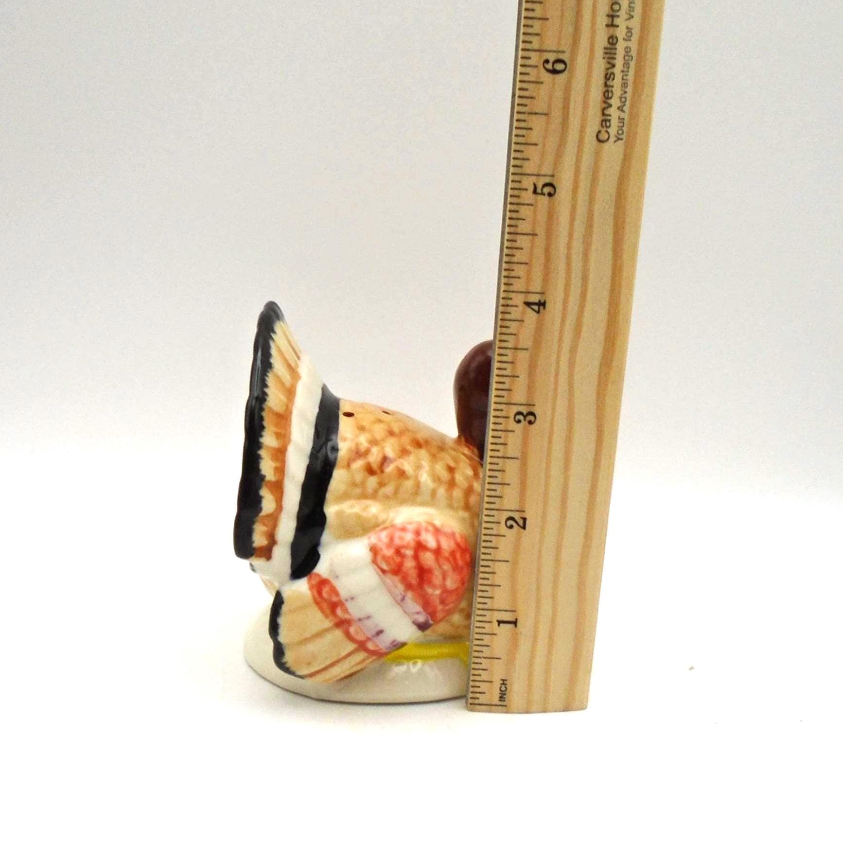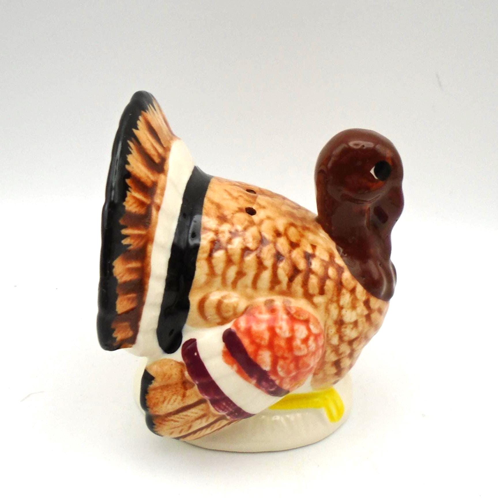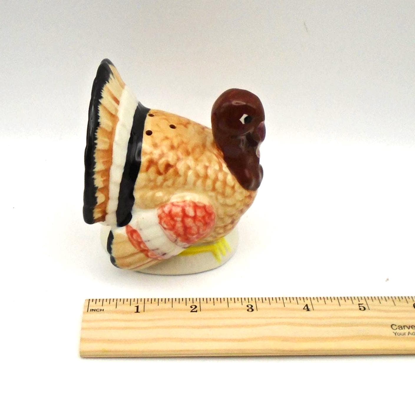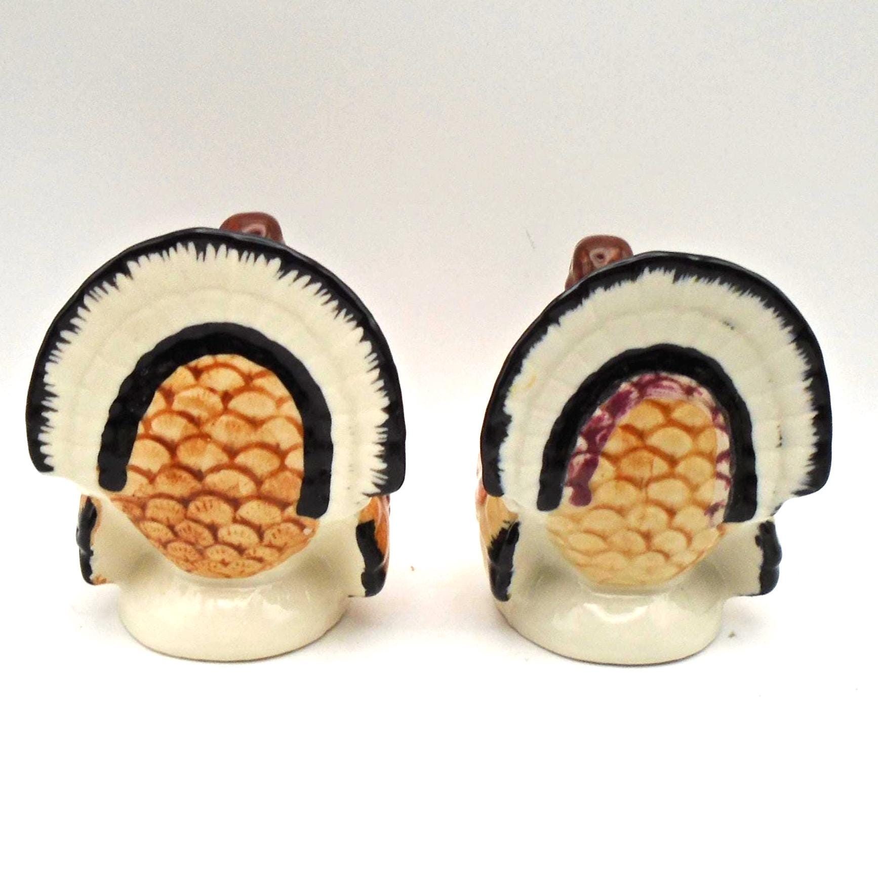 These vintage turkey salt and pepper shakers are adorable. These whimsical shakers would make a wonderful gift, a terrific addition to any collection or display or a fabulous decor item for your Thanksgiving table. These salt and pepper shakers were made in Japan and are marked on the bottom -- although it is hard to see in the photos.