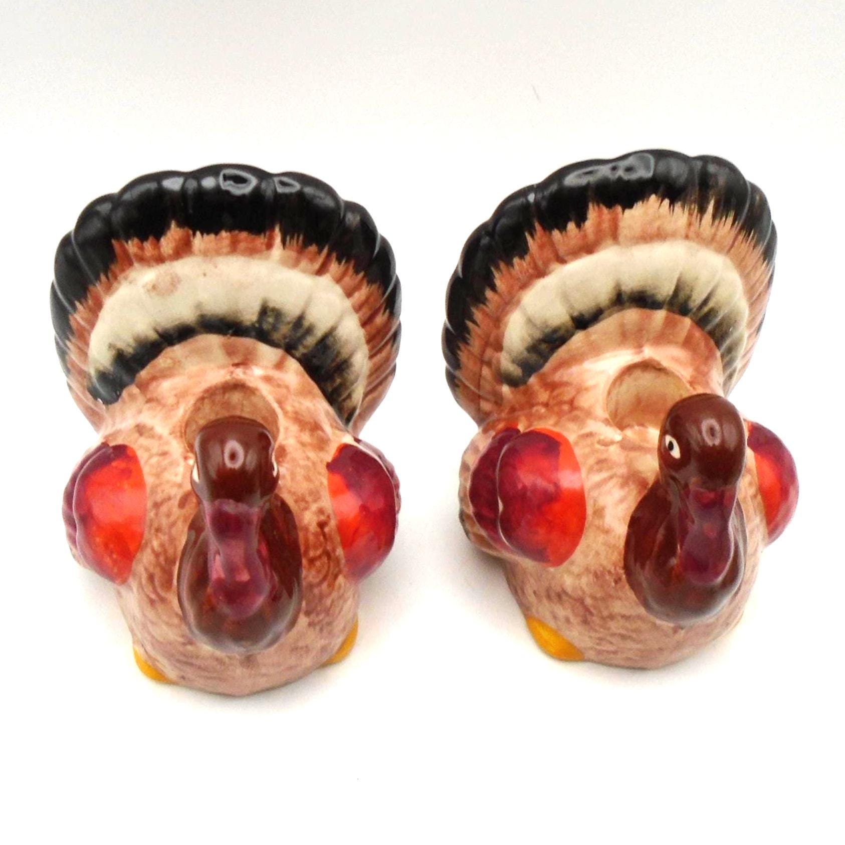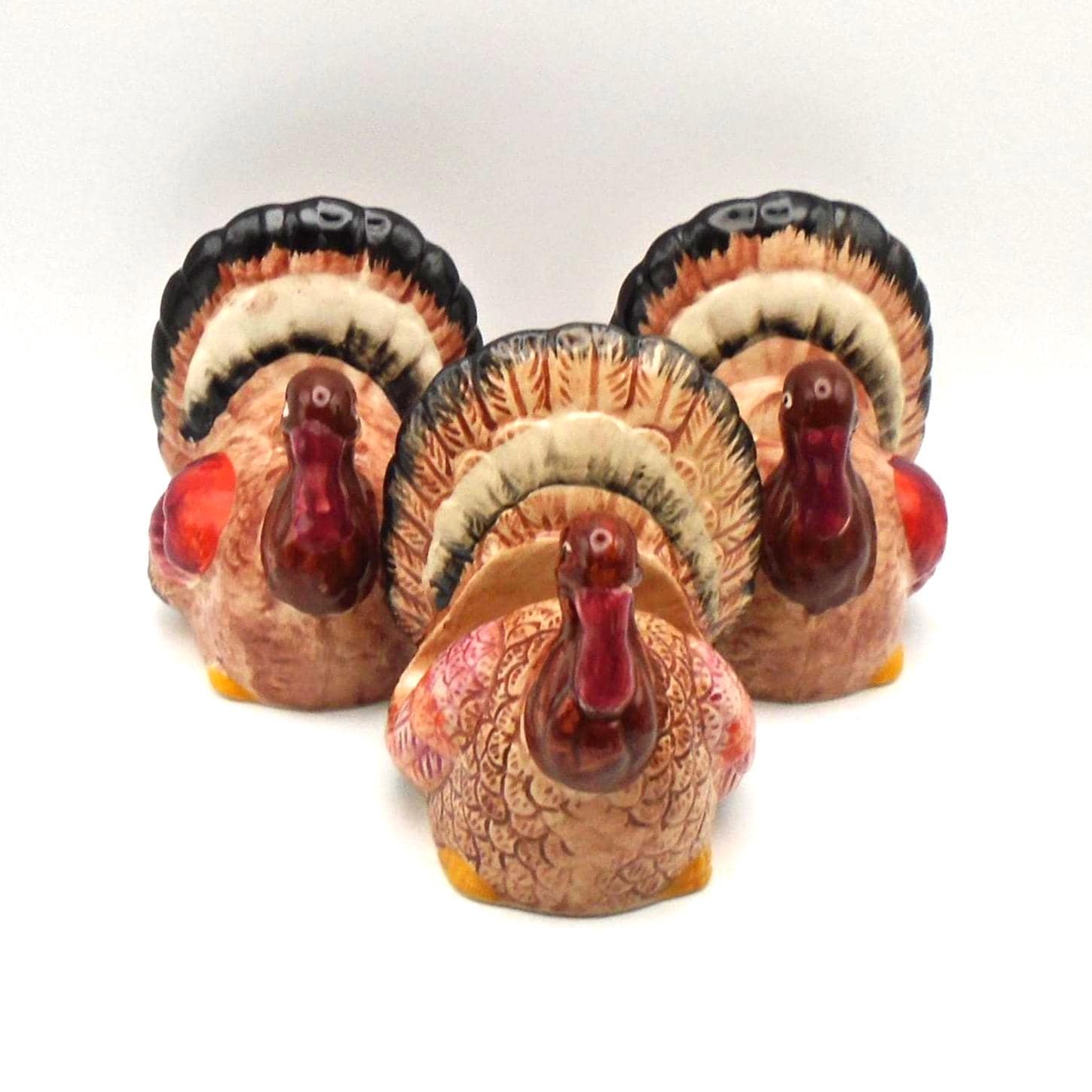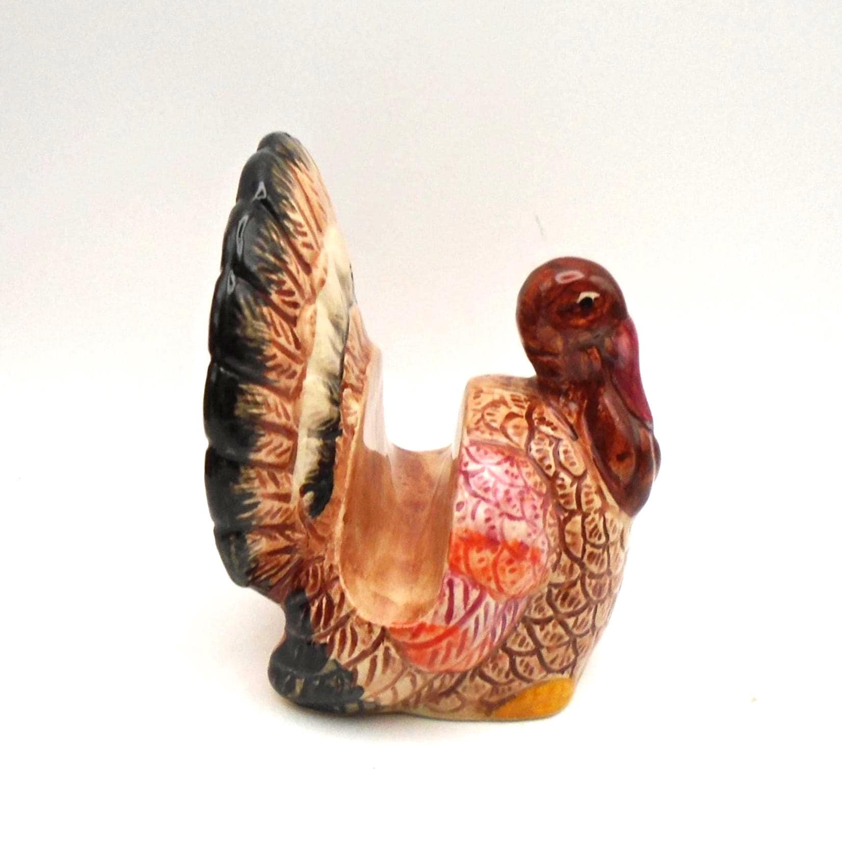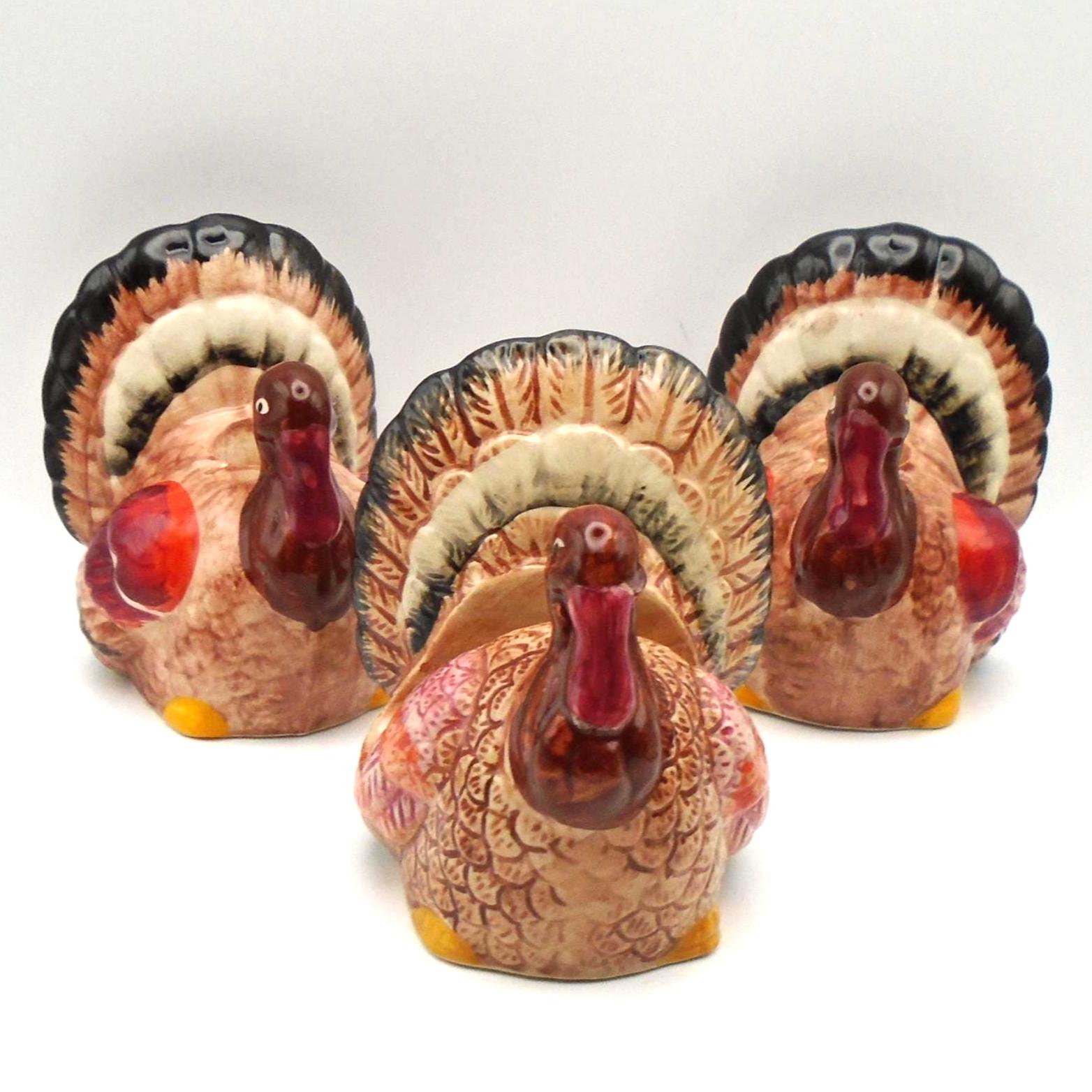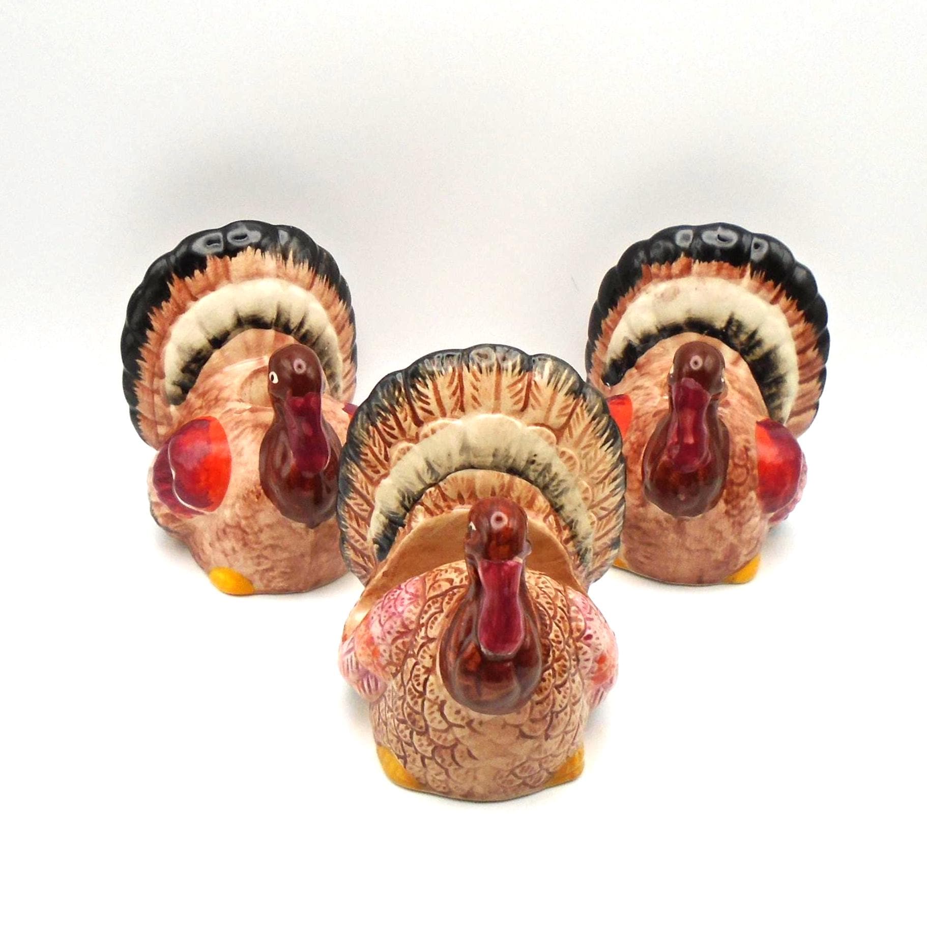 These vintage turkey candle holders (2) and napkin holder (1) are adorable. These whimsical turkeys would make a wonderful gift, a terrific addition to any collection/display or a fabulous decor item for your Thanksgiving table. These holders were made in Japan and are marked on the bottom. Circa 1970's.