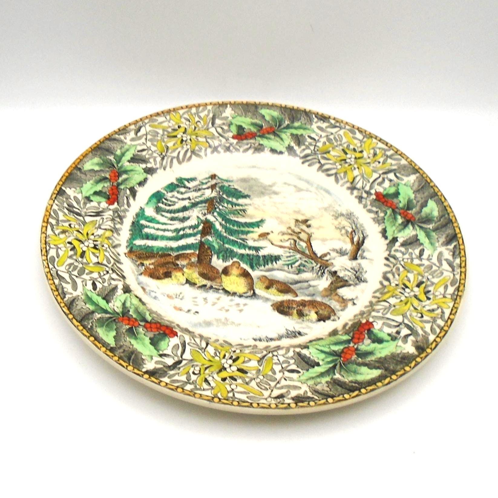 This plate is discontinued, a rare find and very collectible. Marked on the back, this plate is great decor piece for the Christmas/ Winter holidays. Make this awesome plate part of your collection. A splendid gift!