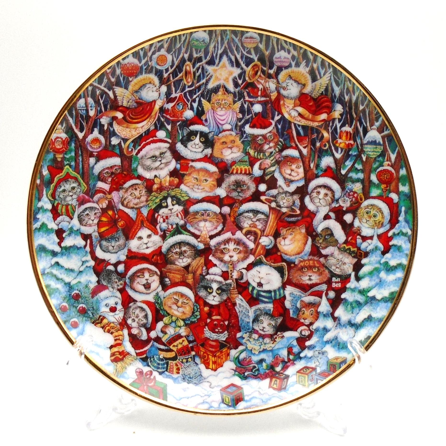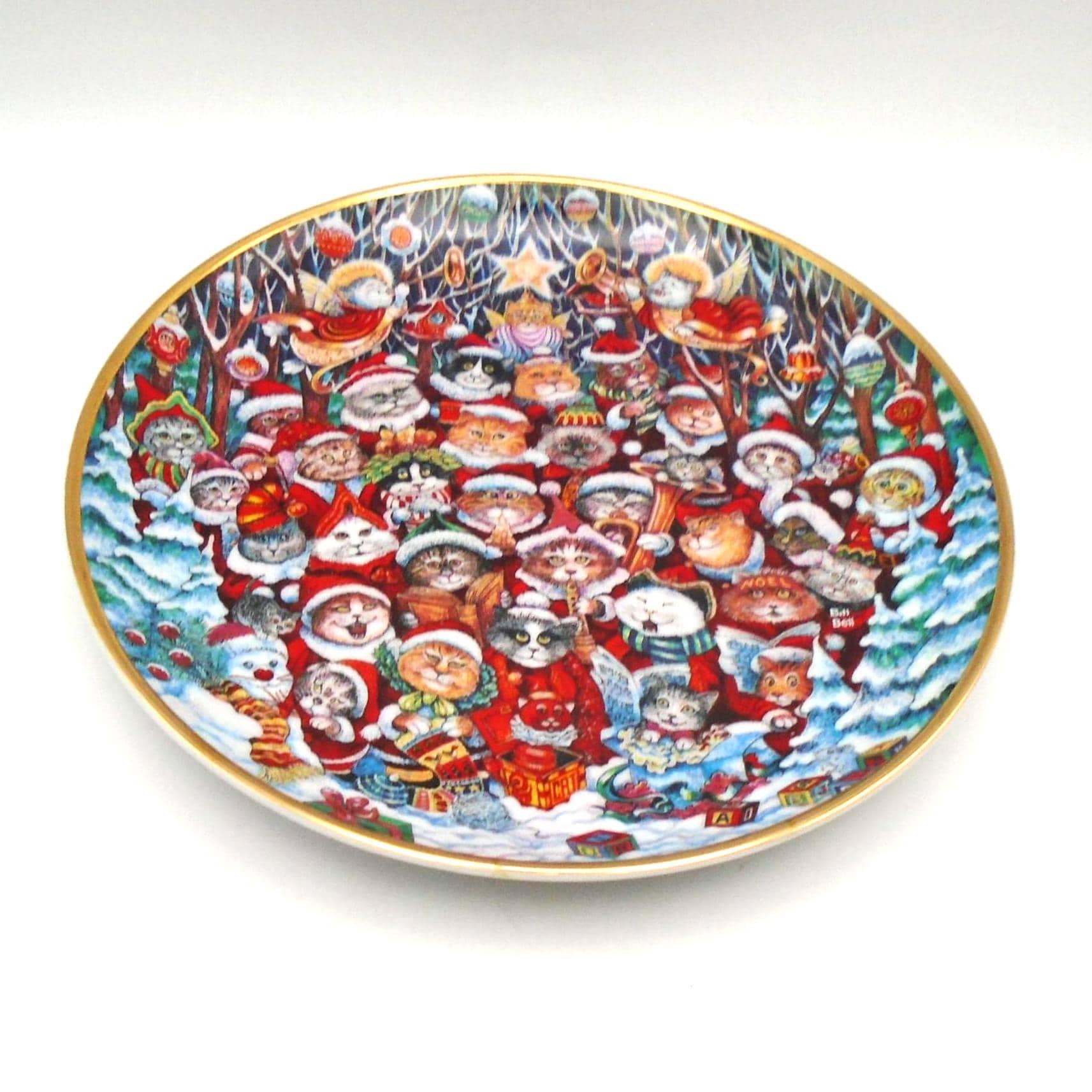This highly detailed plate features dozens of whimsical cats dressed in Santa costumes and singing Christmas carols. Created in the 1990's, this decorative plate is in fabulous condition. Makes an awesome addition to your Christmas collection/display, a great gift for a cat lover, and for anyone who appreciates vintage decor that's merry and whimsical!