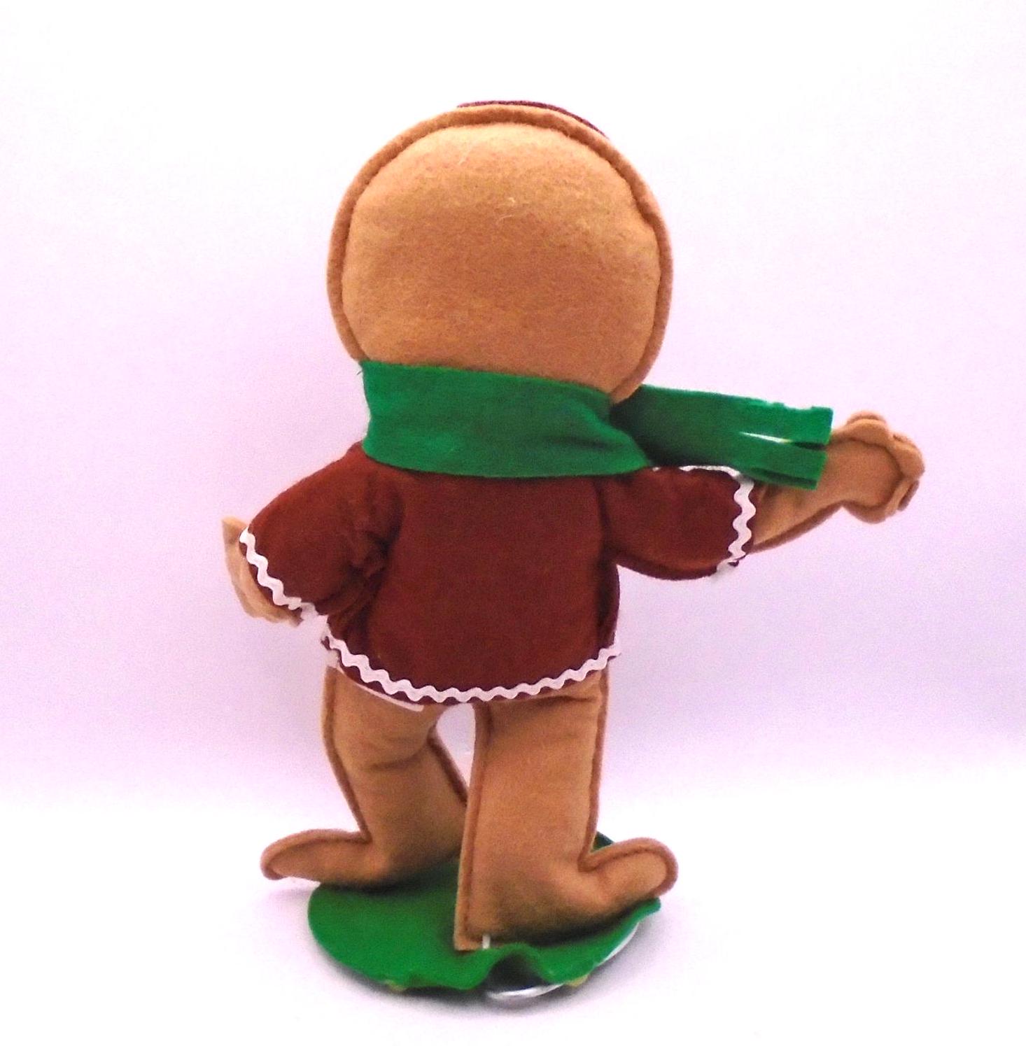 Measuring approximately 8-1/2"T and his base 3-3/4", this adorable gingerbread man is brown, wearing a red shirt and a green scarf with holly. So cute! This doll has a beautifully hand painted face. Would make a great gift or an awesome addition to any vintage Christmas collection or display.