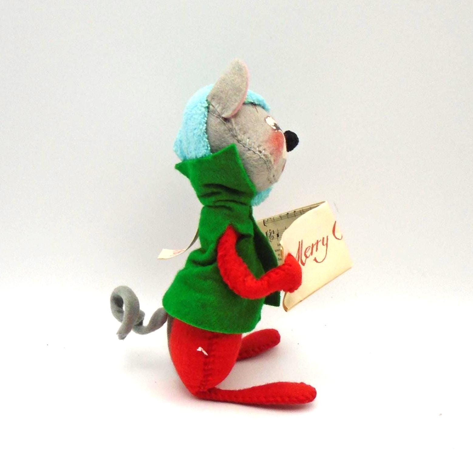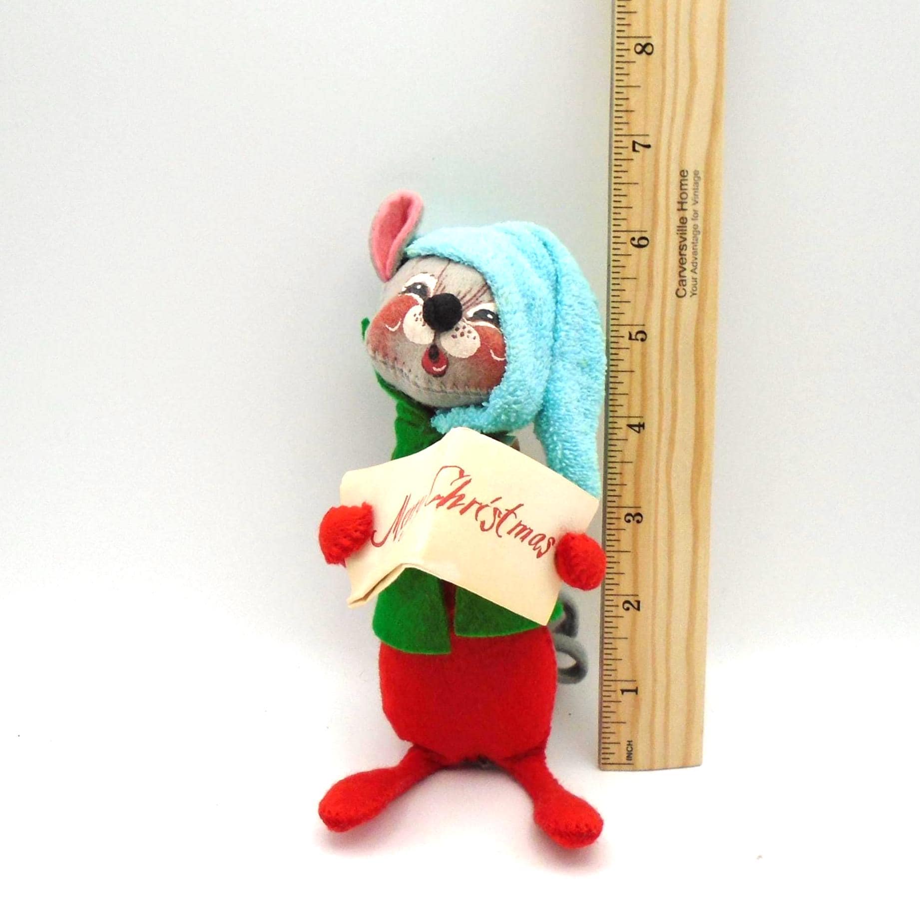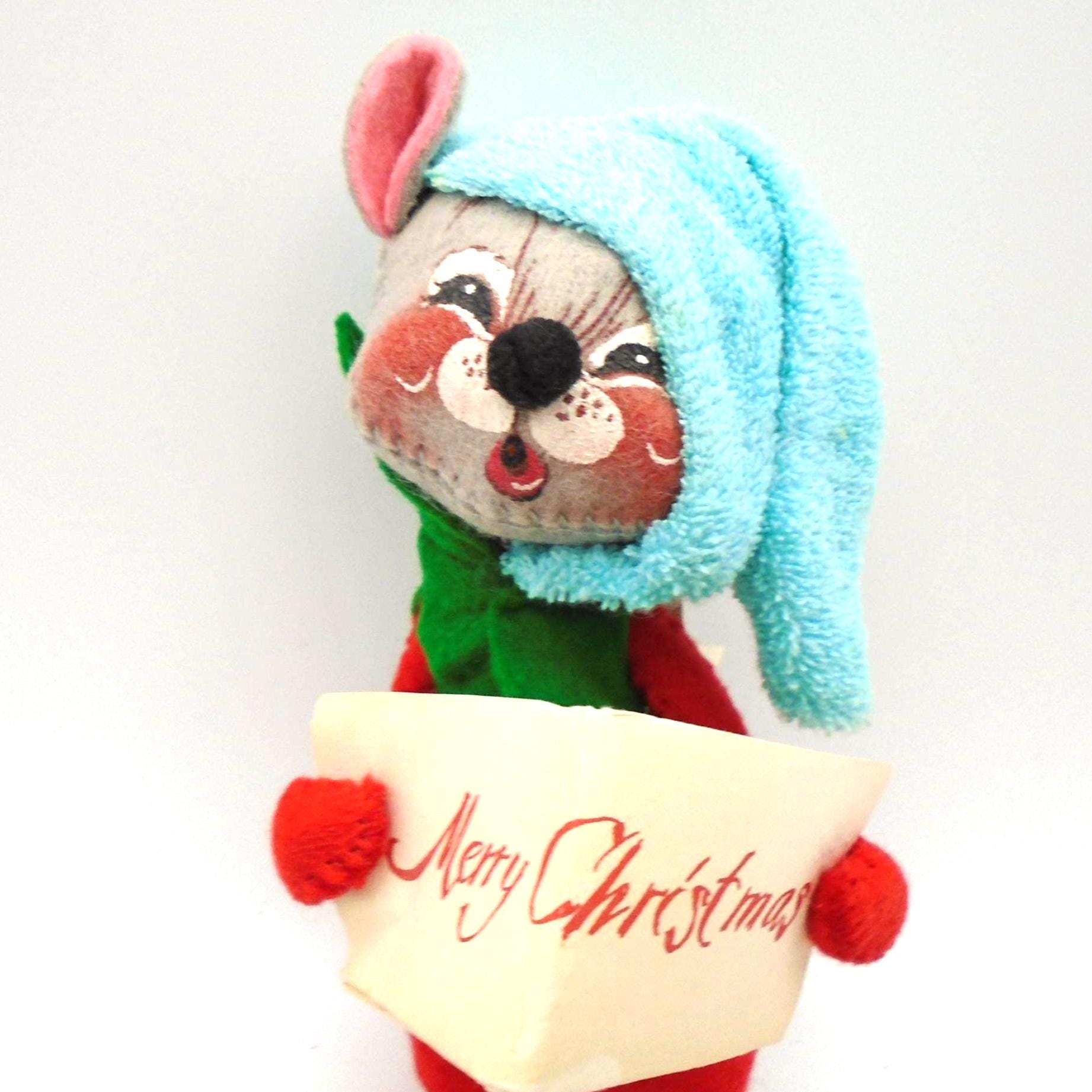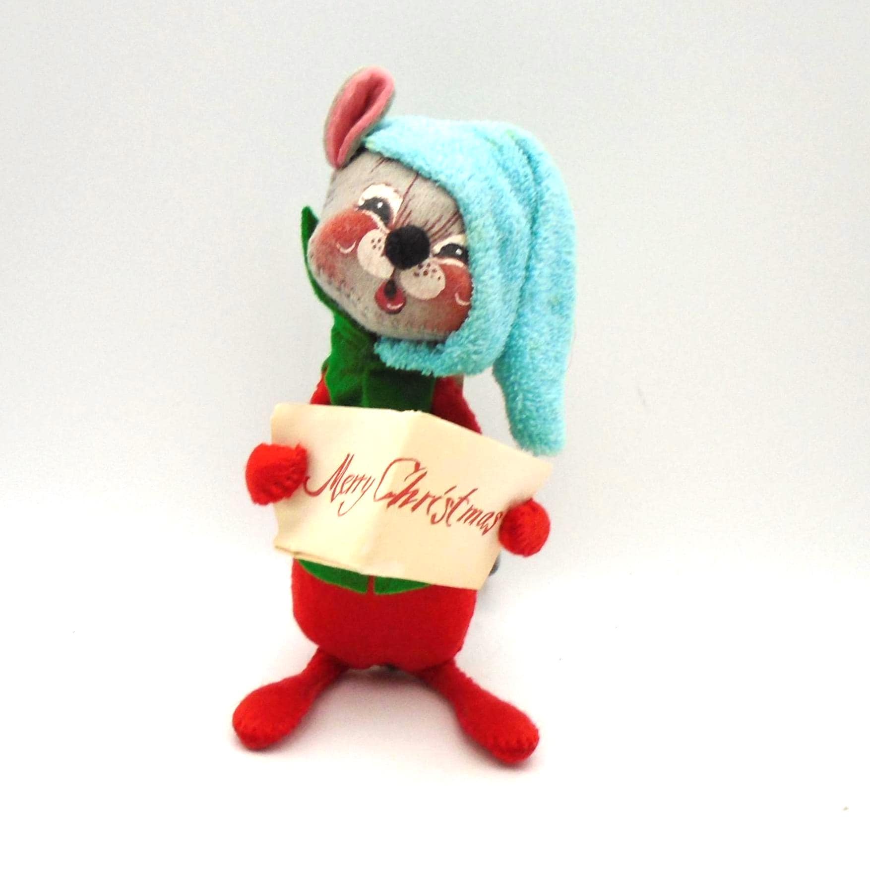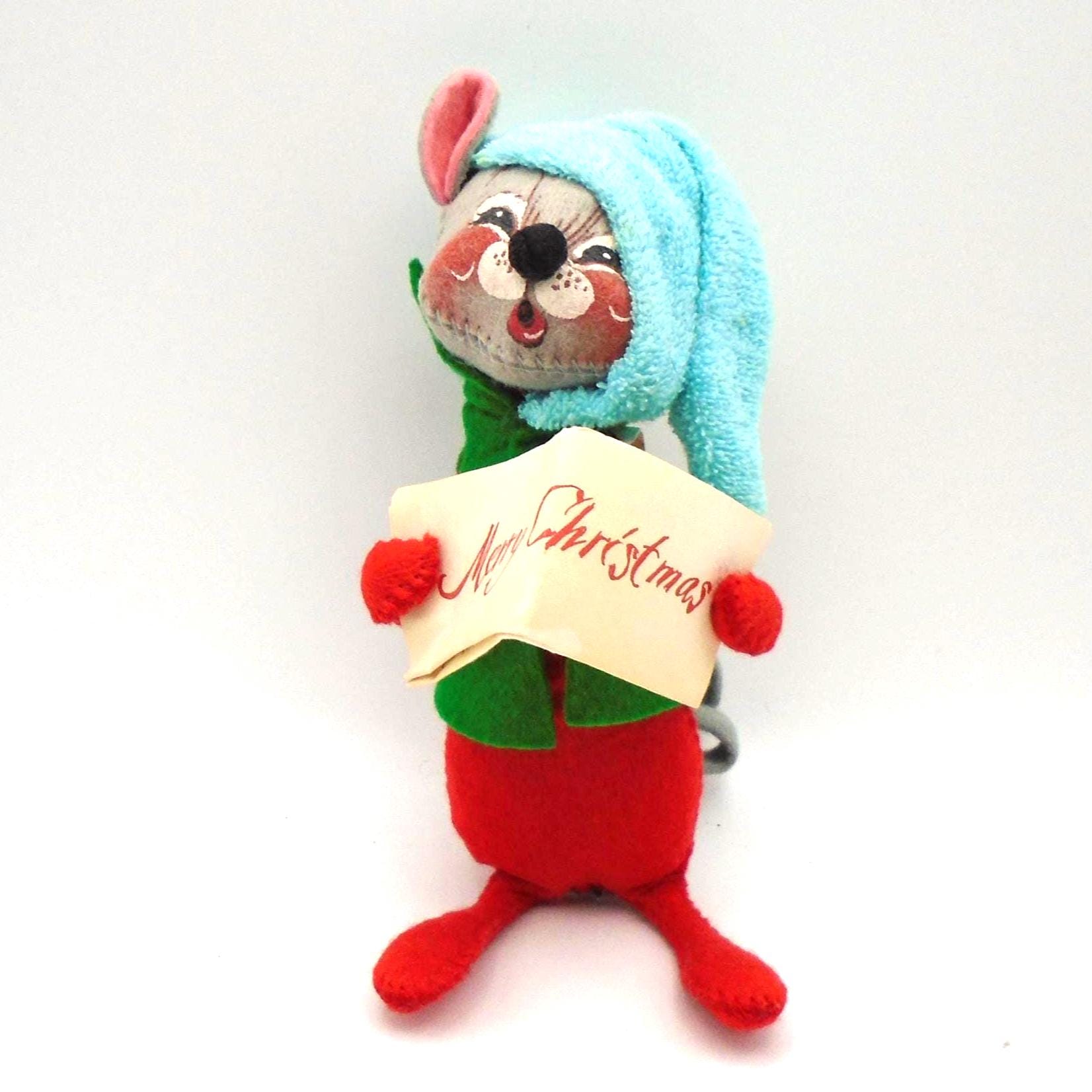 Vintage Annalee Mobilitee Caroling Mouse with Merry Christmas sign from 1965, retired. This vintage mouse, made in New Hampshire, USA in 1990 is whimsical, fun, and very collectible. In very good vintage condition, with no visible wear and tear.