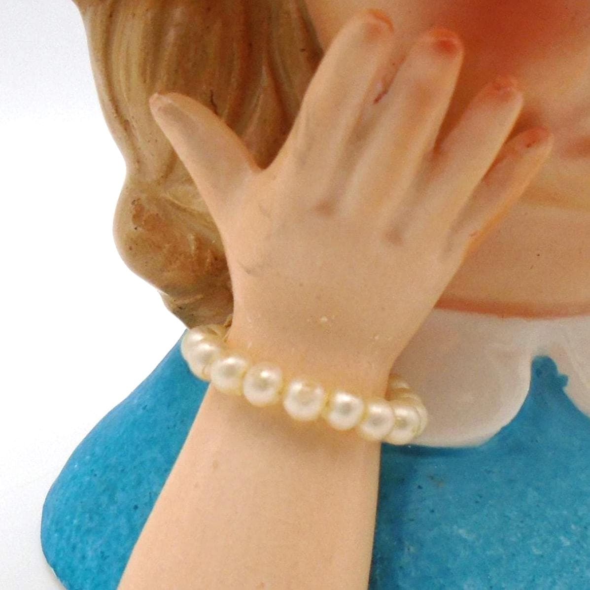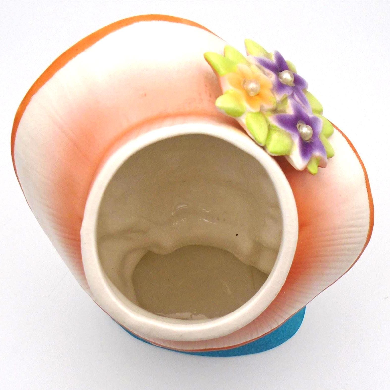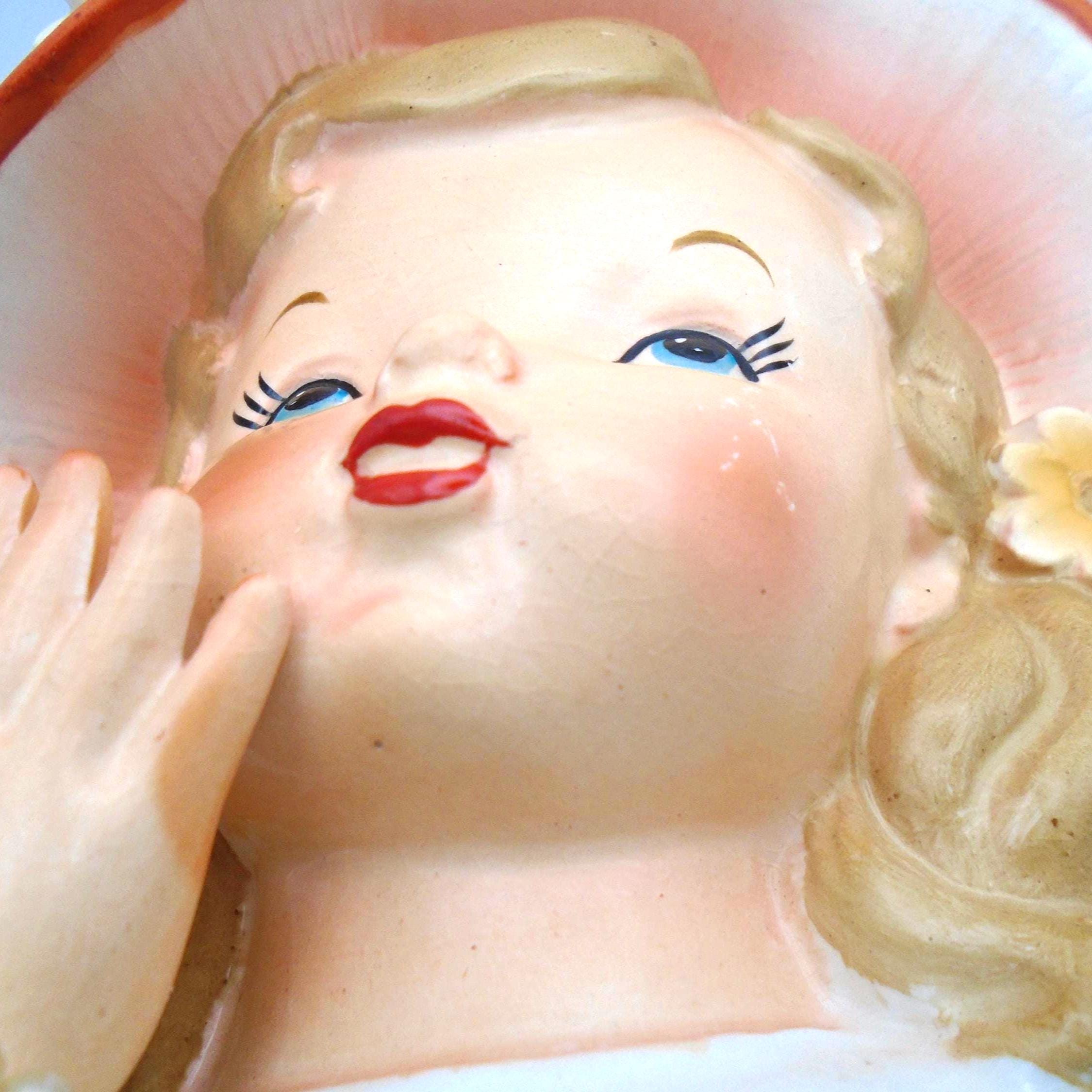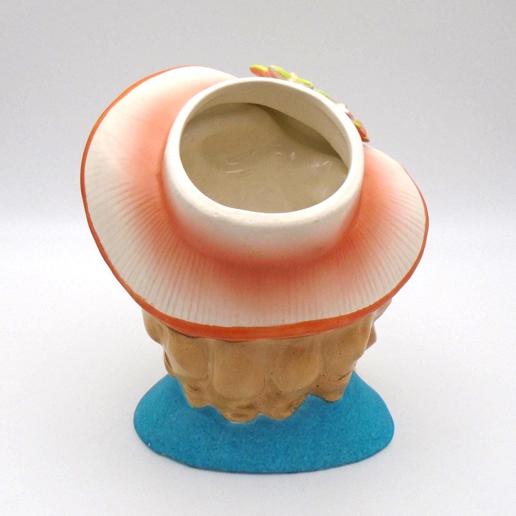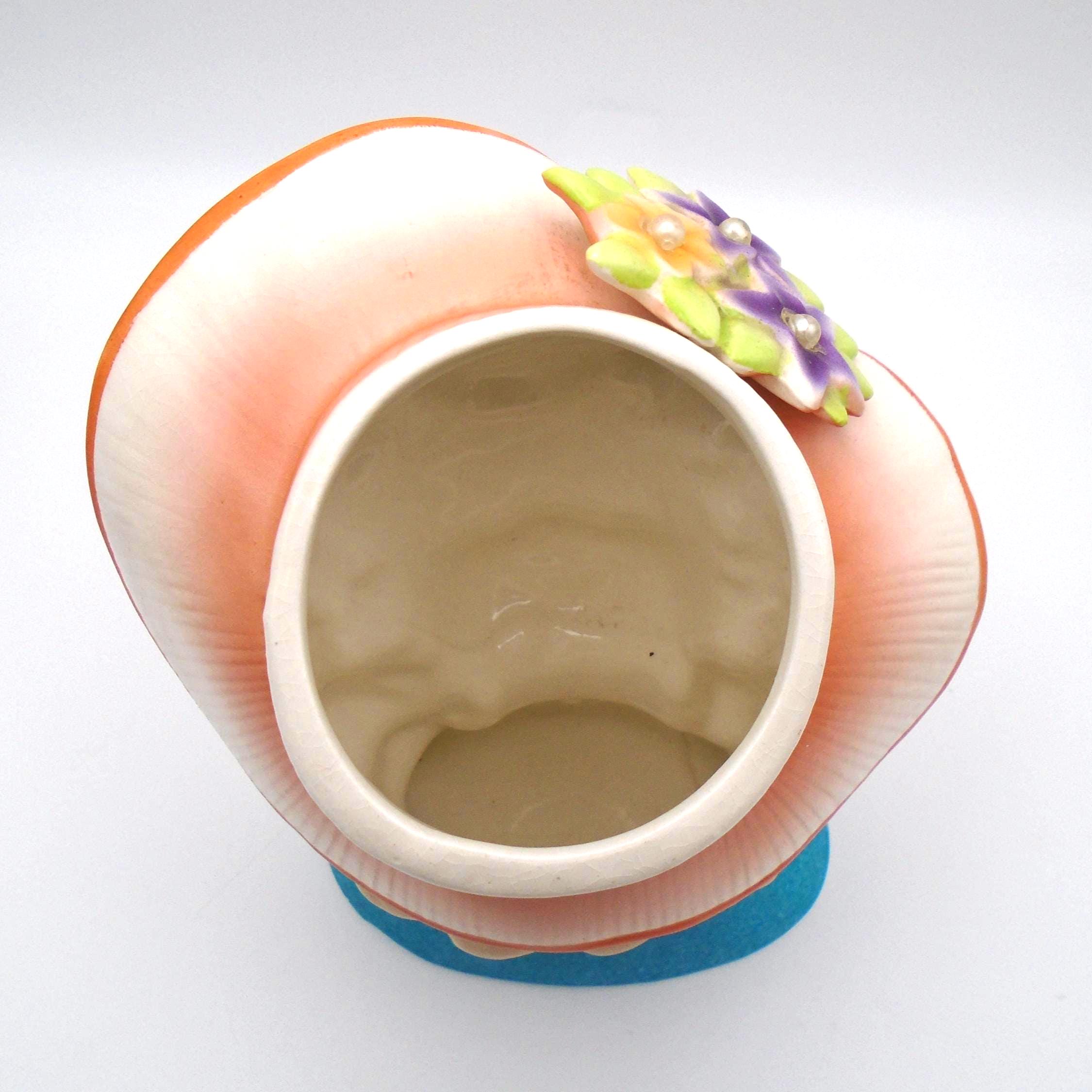 Vintage 1950s-60s, Girl wearing Hat with Flowers Head Vase, Nippon Yoko Book Co, Japan. A great addition for the collector, or as MCM decor for a retro child's room. In excellent vintage condition with no chips, or repairs. Minor crazing and some scuffs from wear from use, inside is very clean. Any imperfections seen are from the manufacturing process. With original faux pearl bracelet.