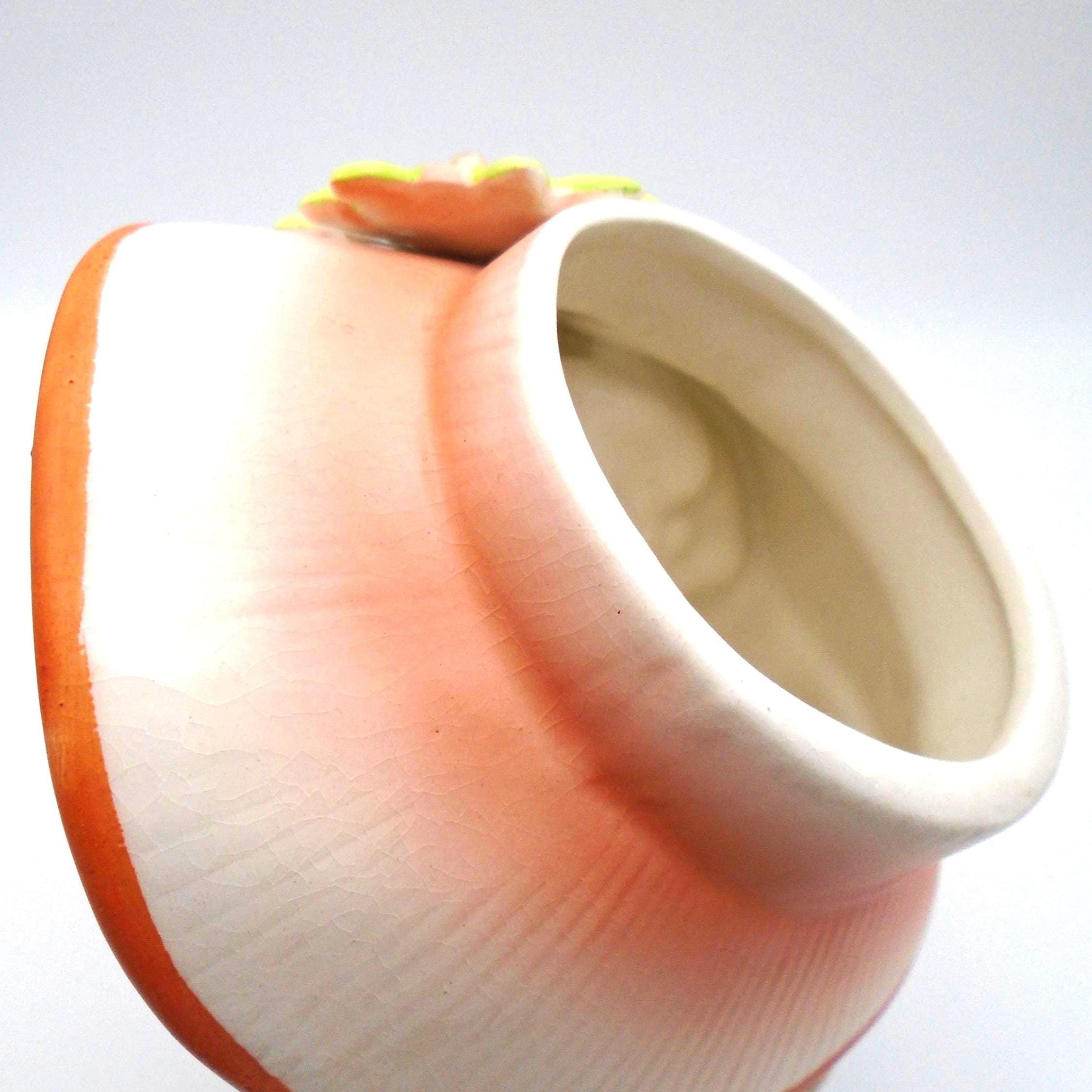 This vase/planter measures approximately 5 3/4" tall x 5 1/4" at widest point. Can be used as a vase for a plant or succulent, make-up brushes, or just as a unique decor piece.