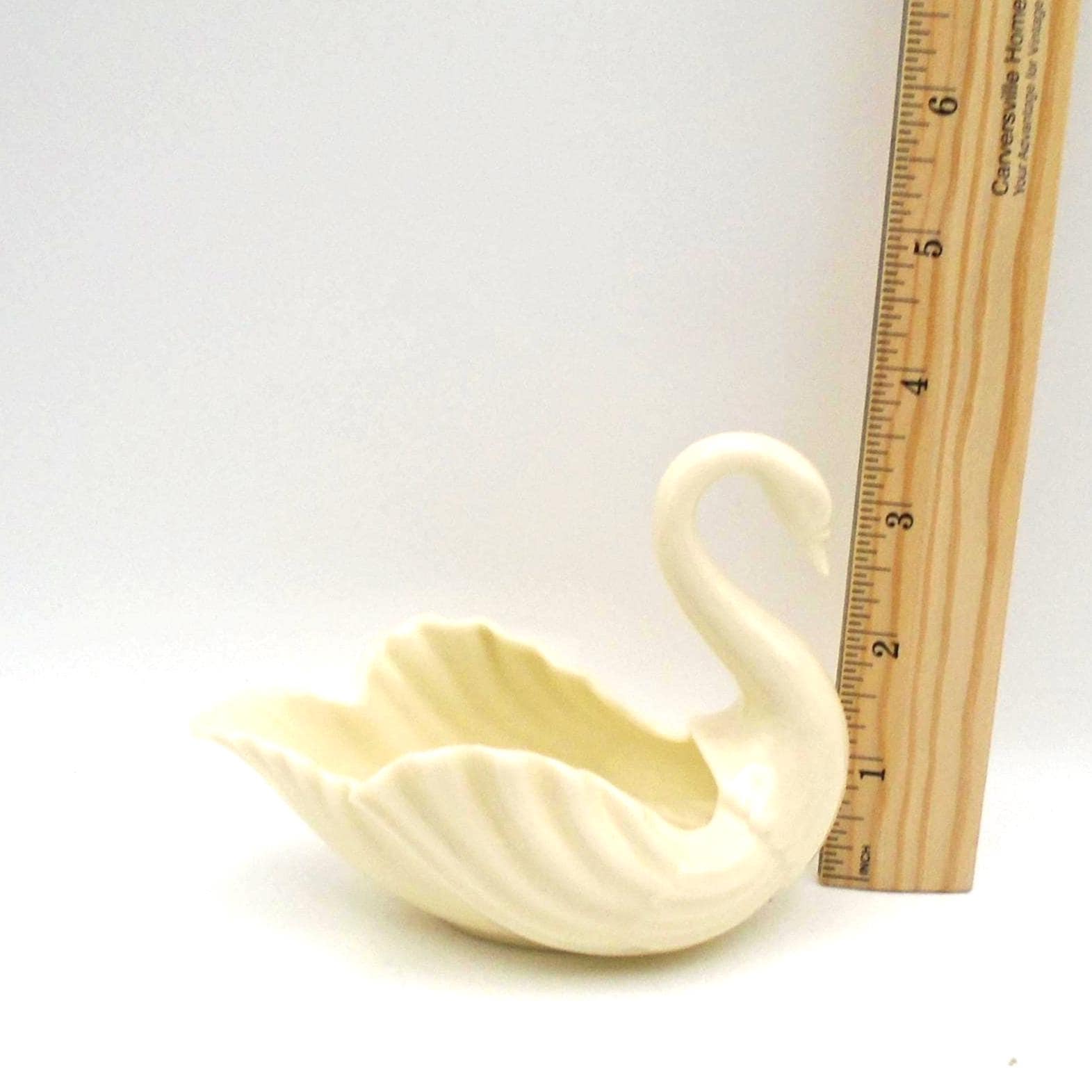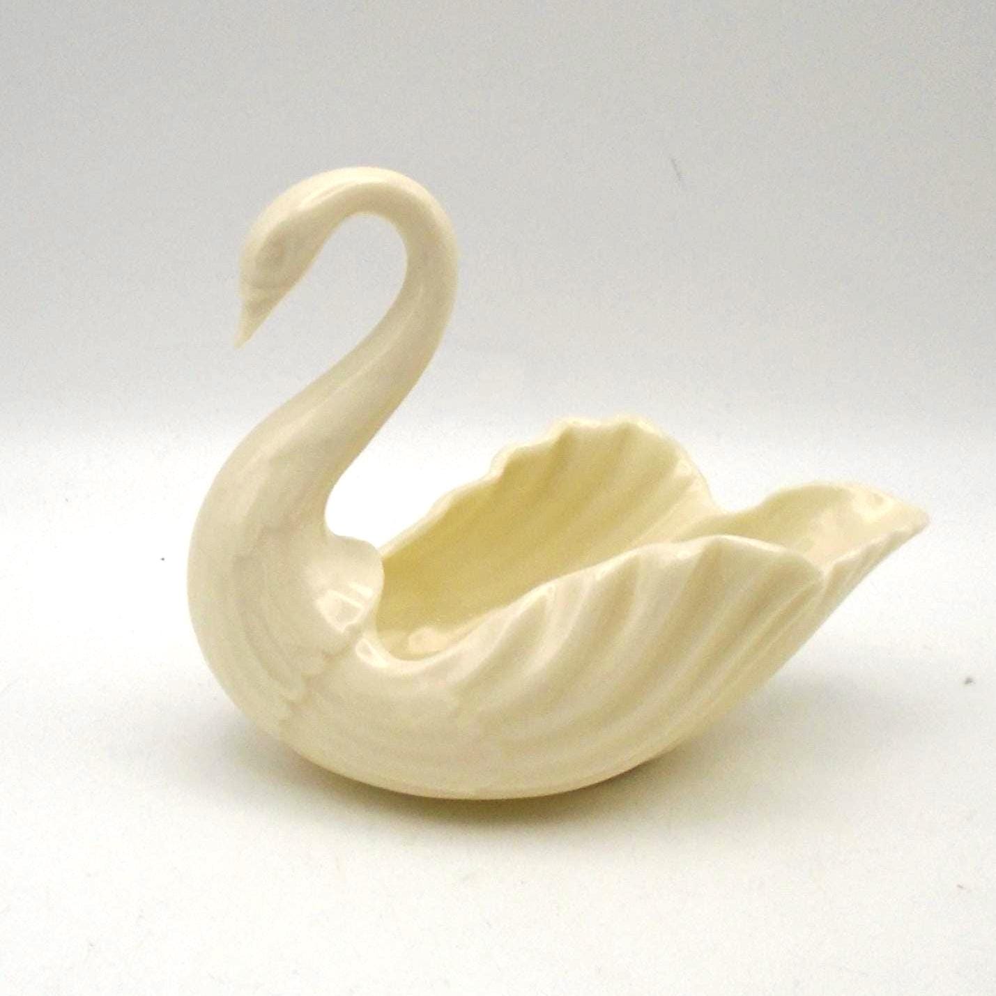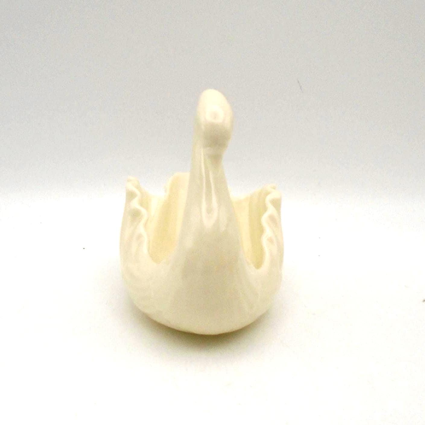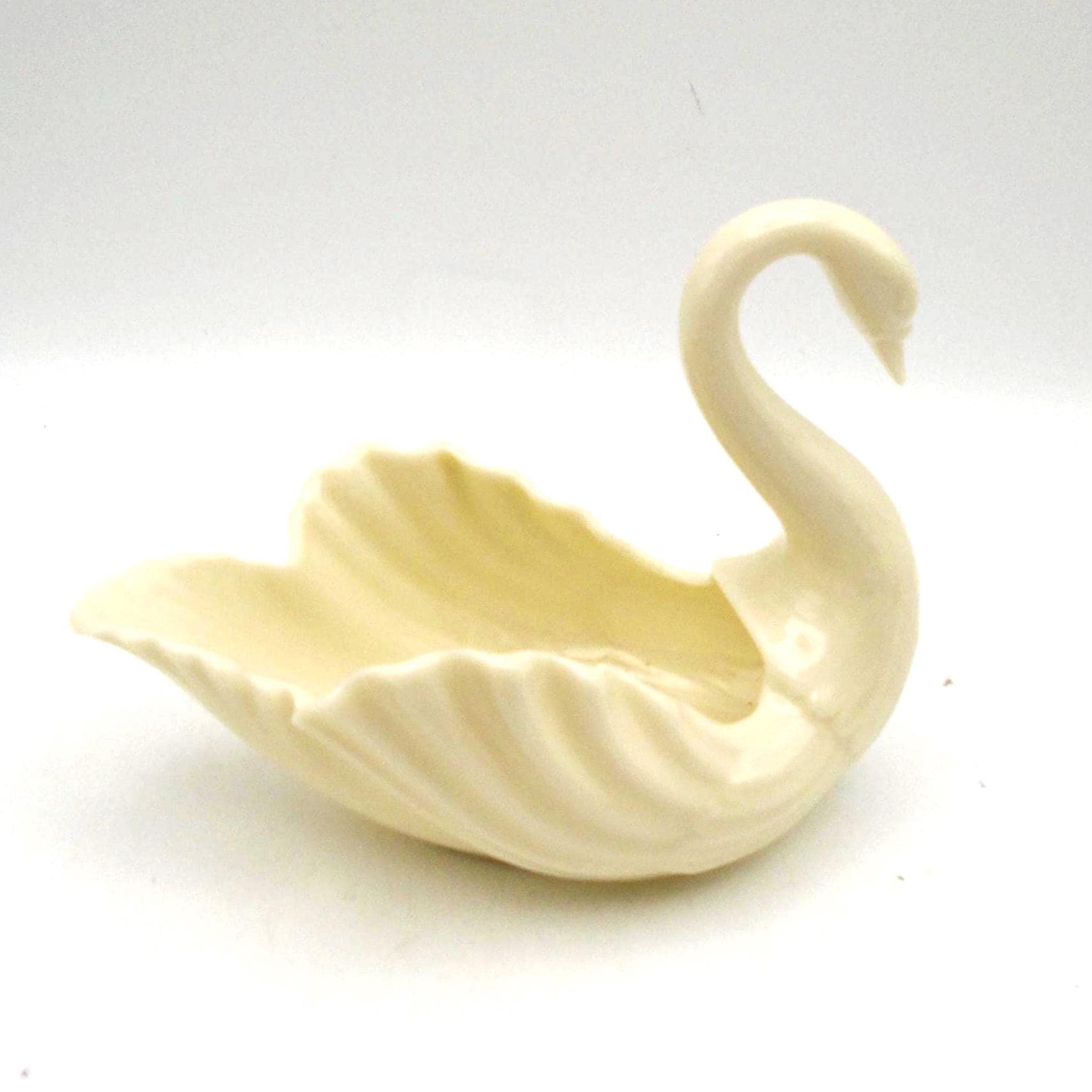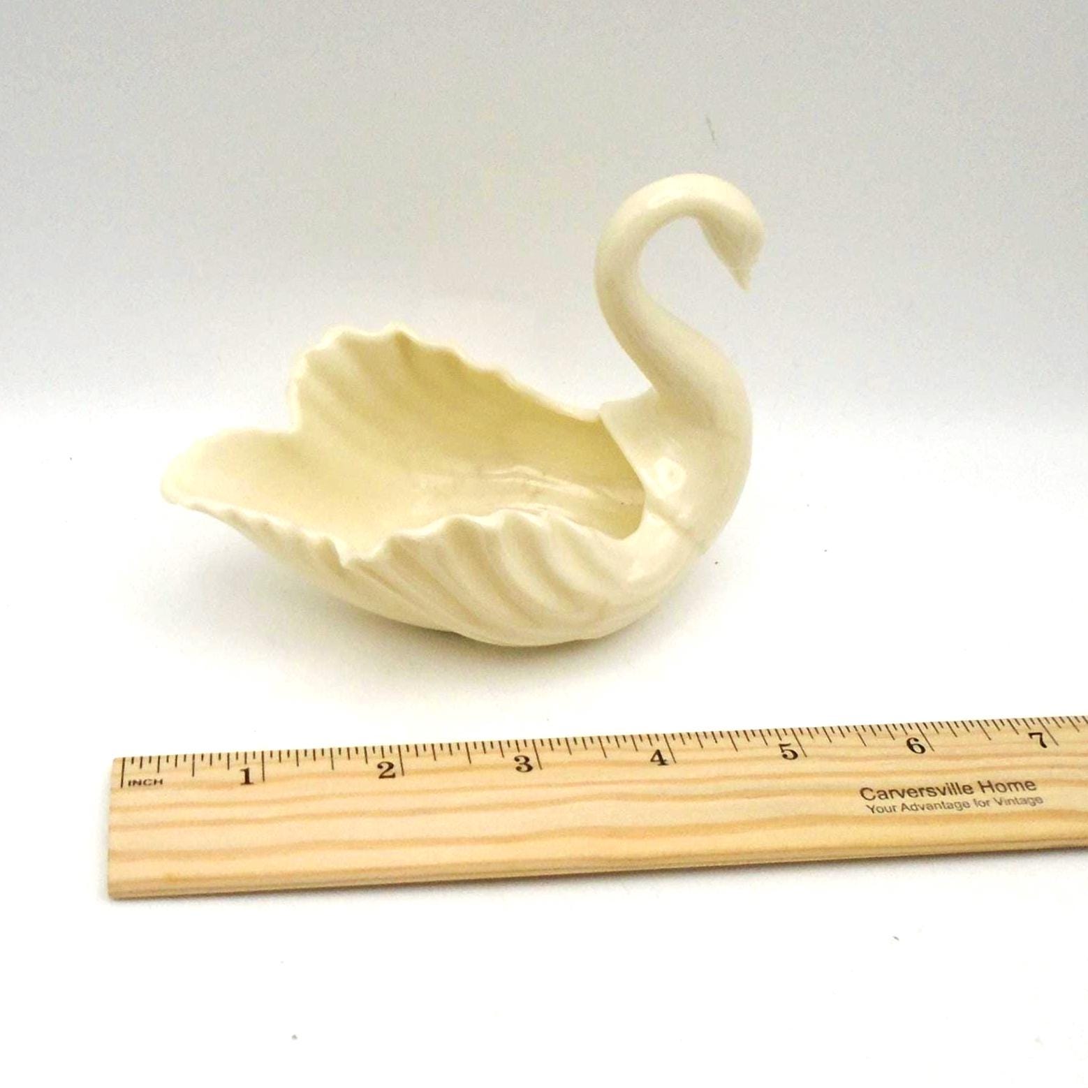 This swan dish is simply lovely and would be a nice addition to your vanity. In excellent condition with no cracks or chips, or stains, this swan is timeless piece of elegance and craftsmanship. It is beautifully sculpted in classic ivory fine porcelain. This graceful swan features delicately detailed feathers and a curved neck, making it a charming center piece or collectible accent as a trinket dish or candy dish.
