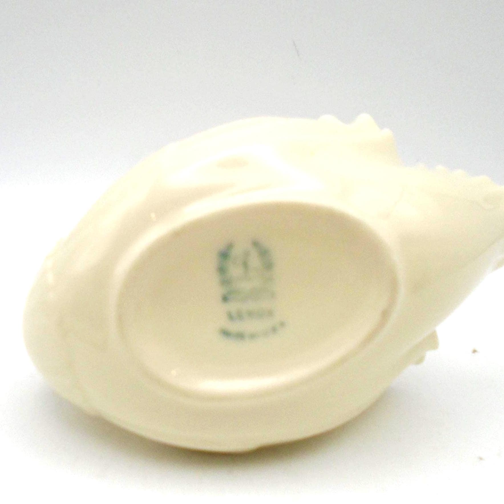 Vintage Lenox fine ivory porcelain Swan dish, made in USA. This dish is marked "Lenox Made in USA" on the bottom and measures approximately 4-1/4" L x 3-1/4"H x 3" W. The green wreath with Made in USA mark was used from 1931 until 1953.