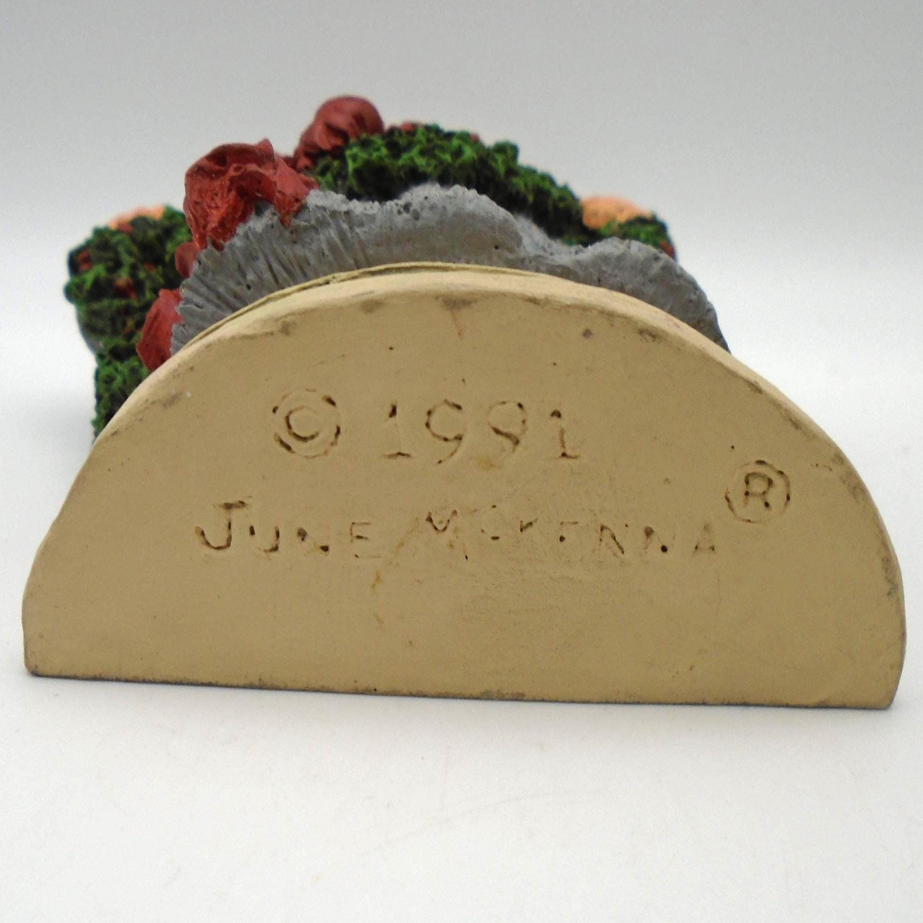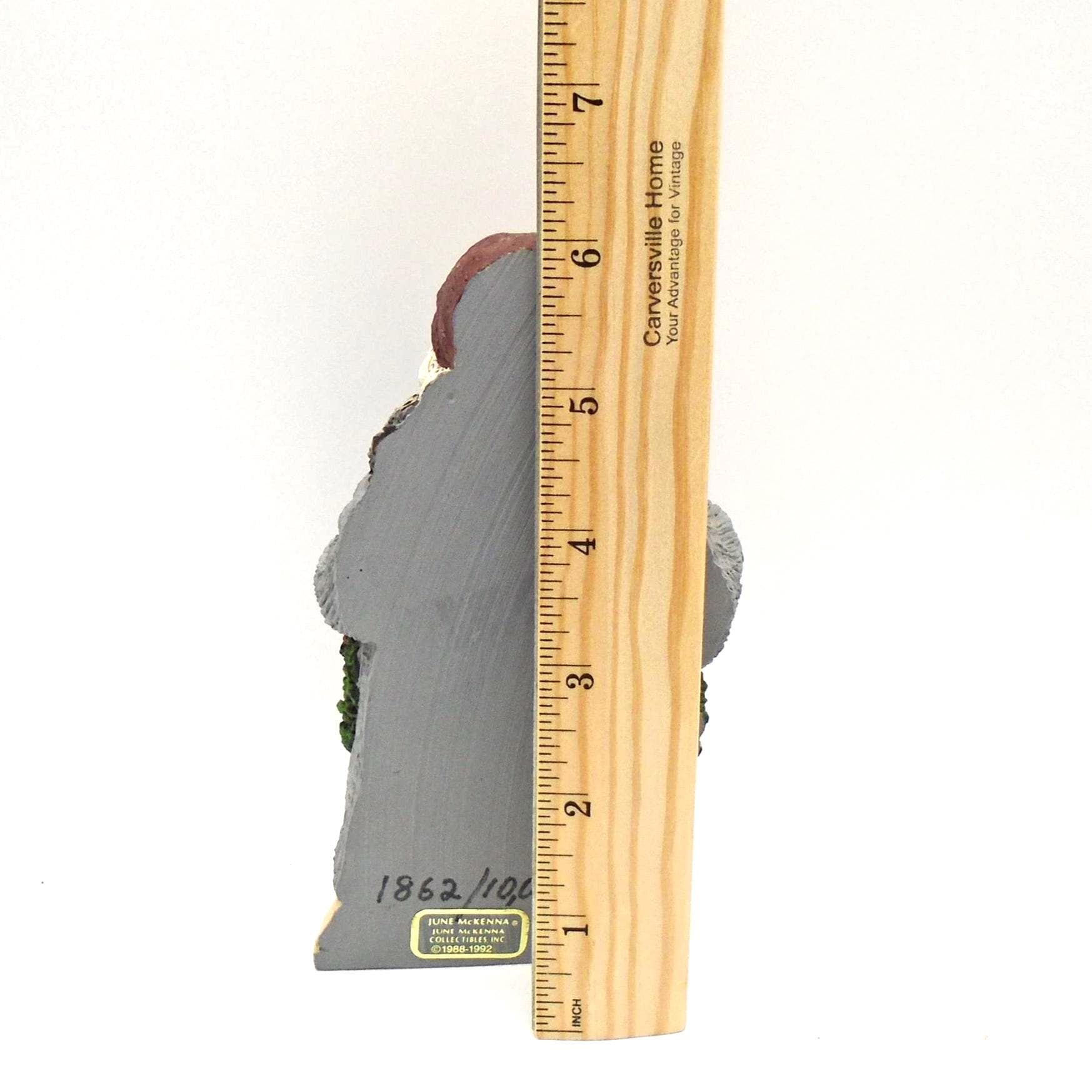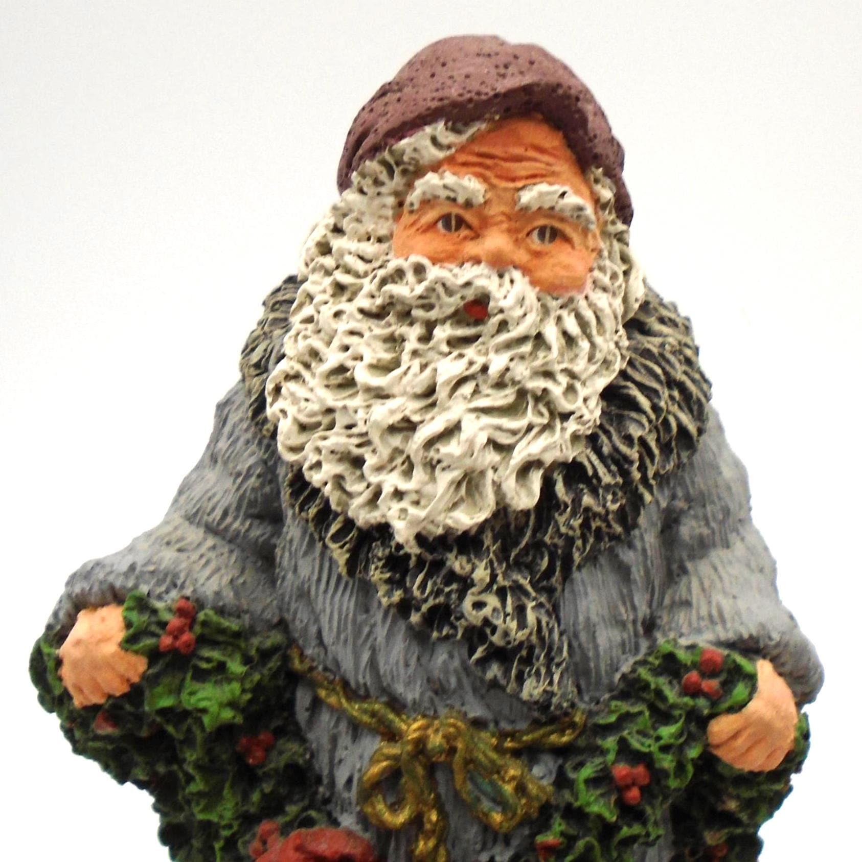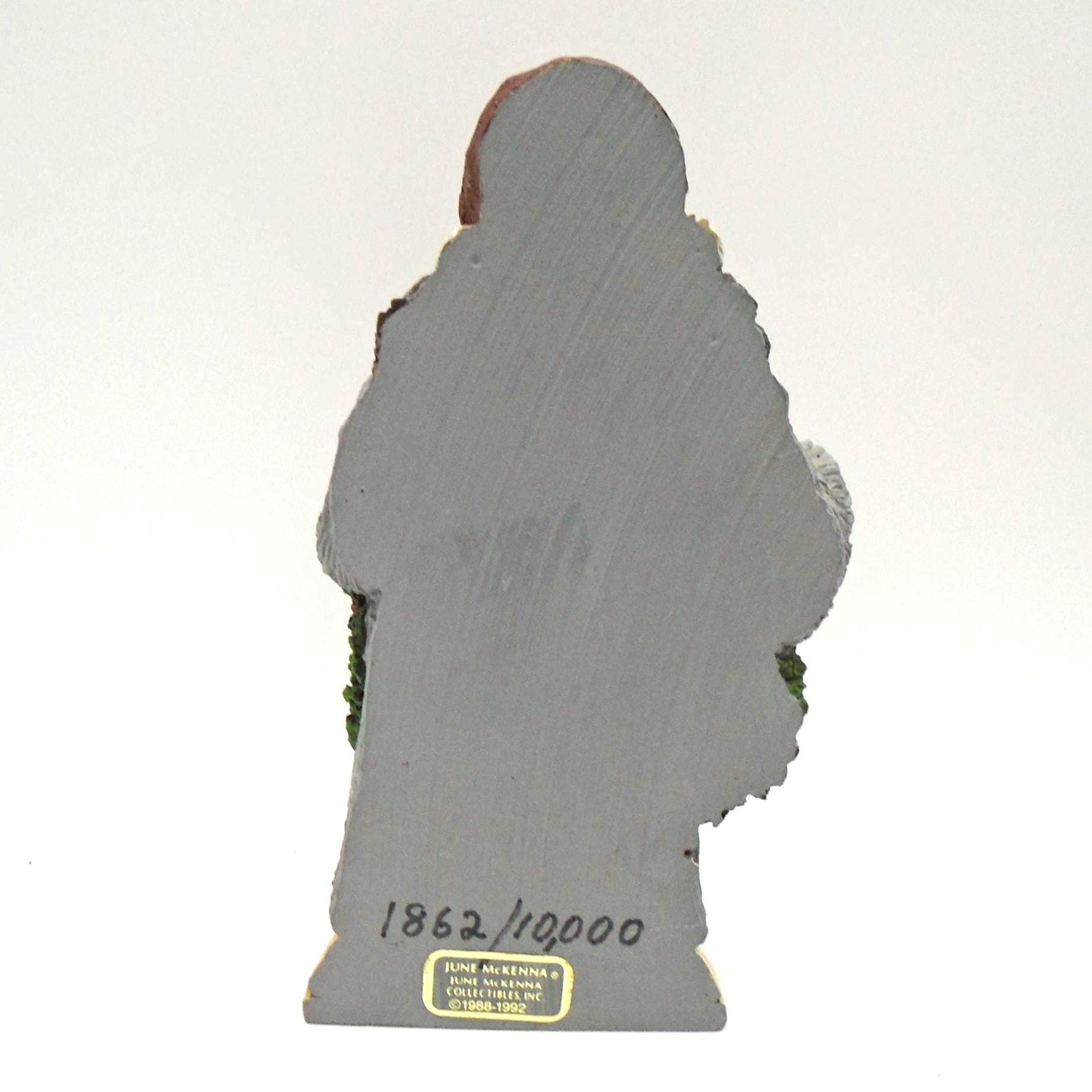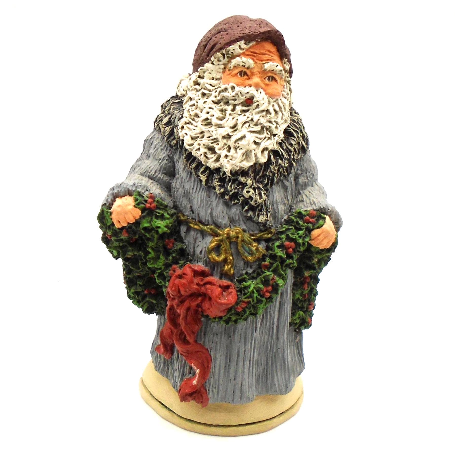 June McKenna Santa Christmas Folkart Collectible, "Deck the Halls", 1991 signed, and numbered. June McKenna is a well known sculptor who has work in museums and the Smithsonian. In the early 1980s she created a hand made line of folk art and Christmas collectibles. They were popular collectibles in the 1980's and 90's with their unique, old fashioned folk art charm.