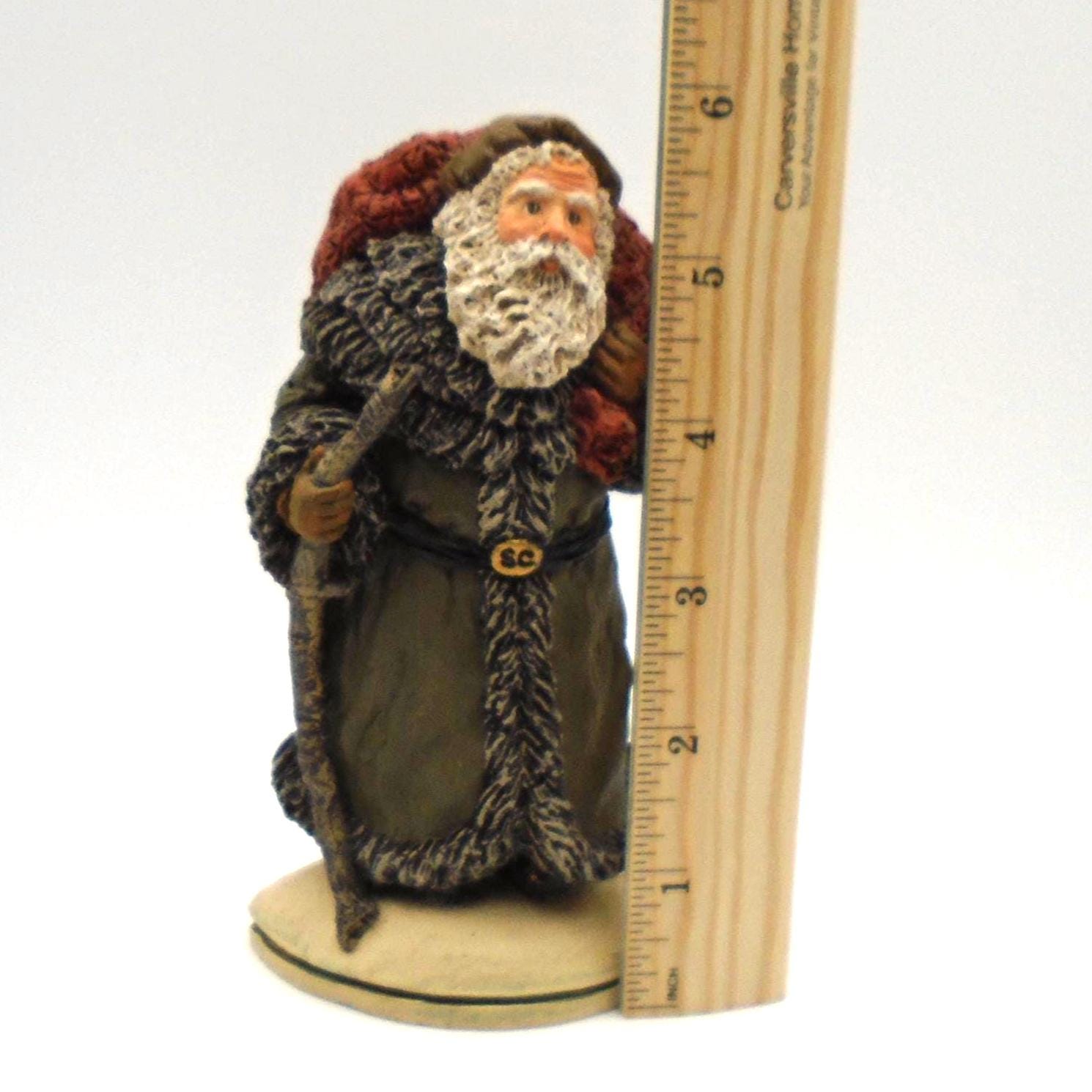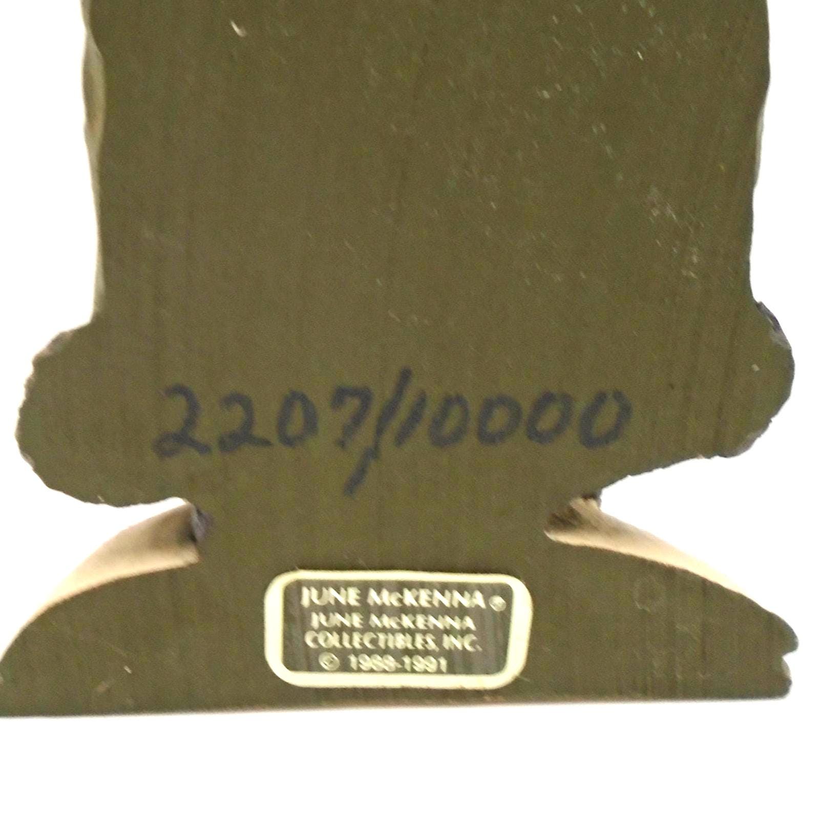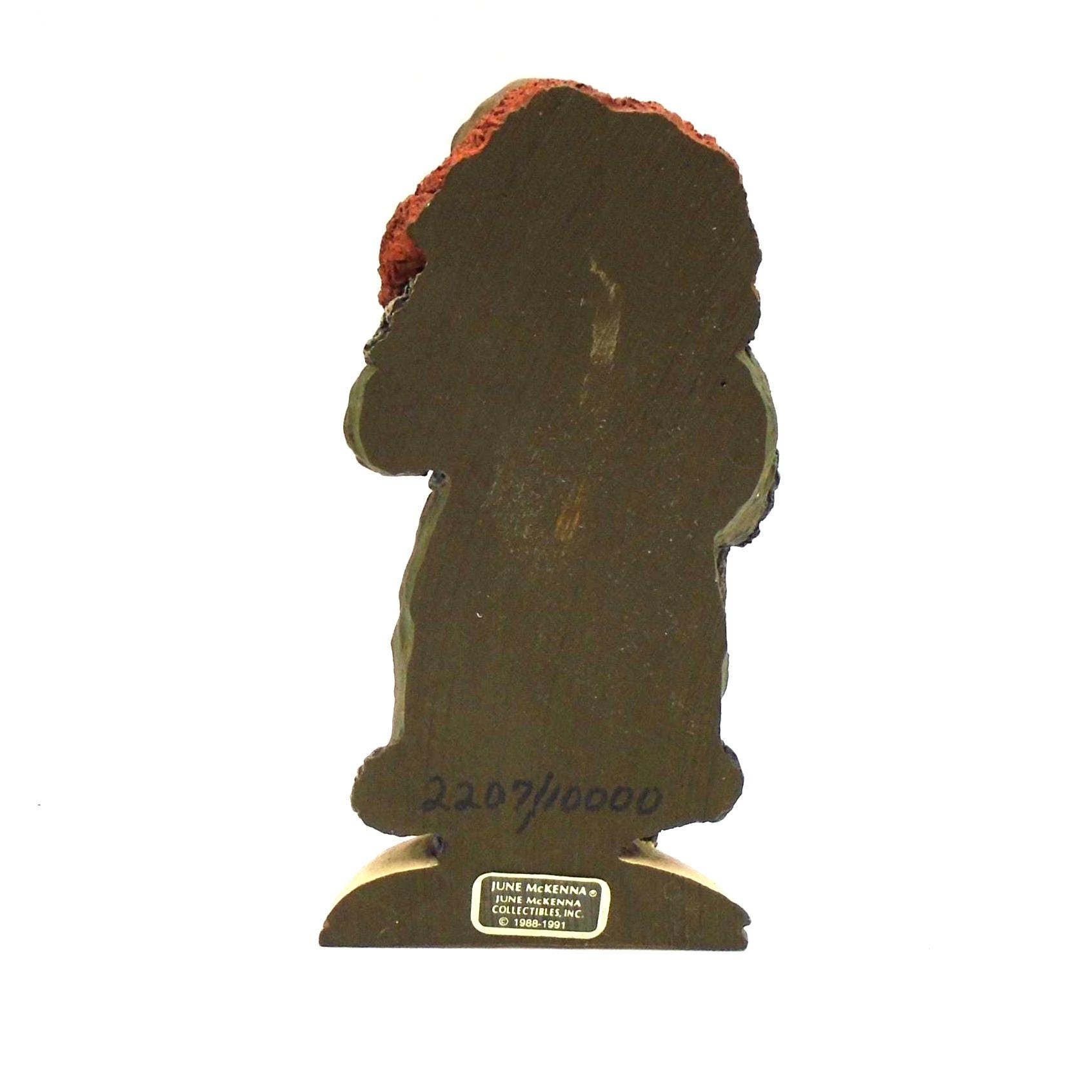 June McKenna limited edition Santa Christmas Folk Art Collectible, "Santa With Walking Stick" 1990, signed and numbered on back. June McKenna is a well known sculptor who has work in museums and the Smithsonian. In the early 1980s she created a hand made line of folk art and Christmas collectibles. They were popular collectibles in the 1980's and 90's with their unique, old fashioned folk art charm.