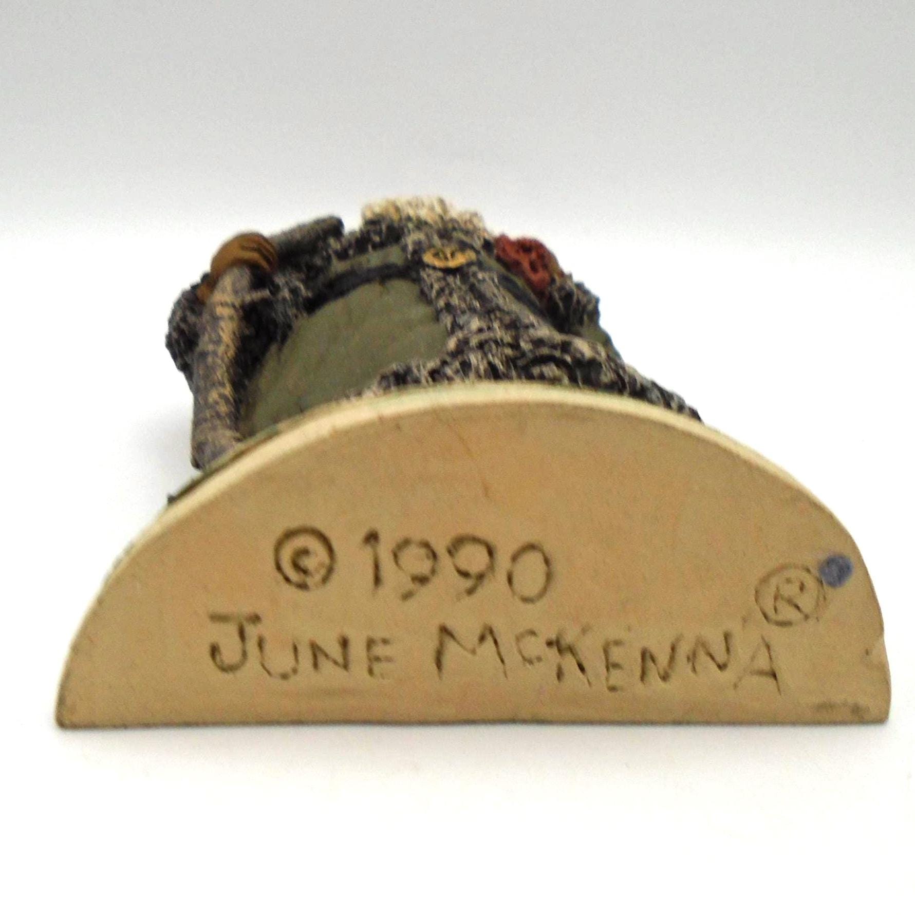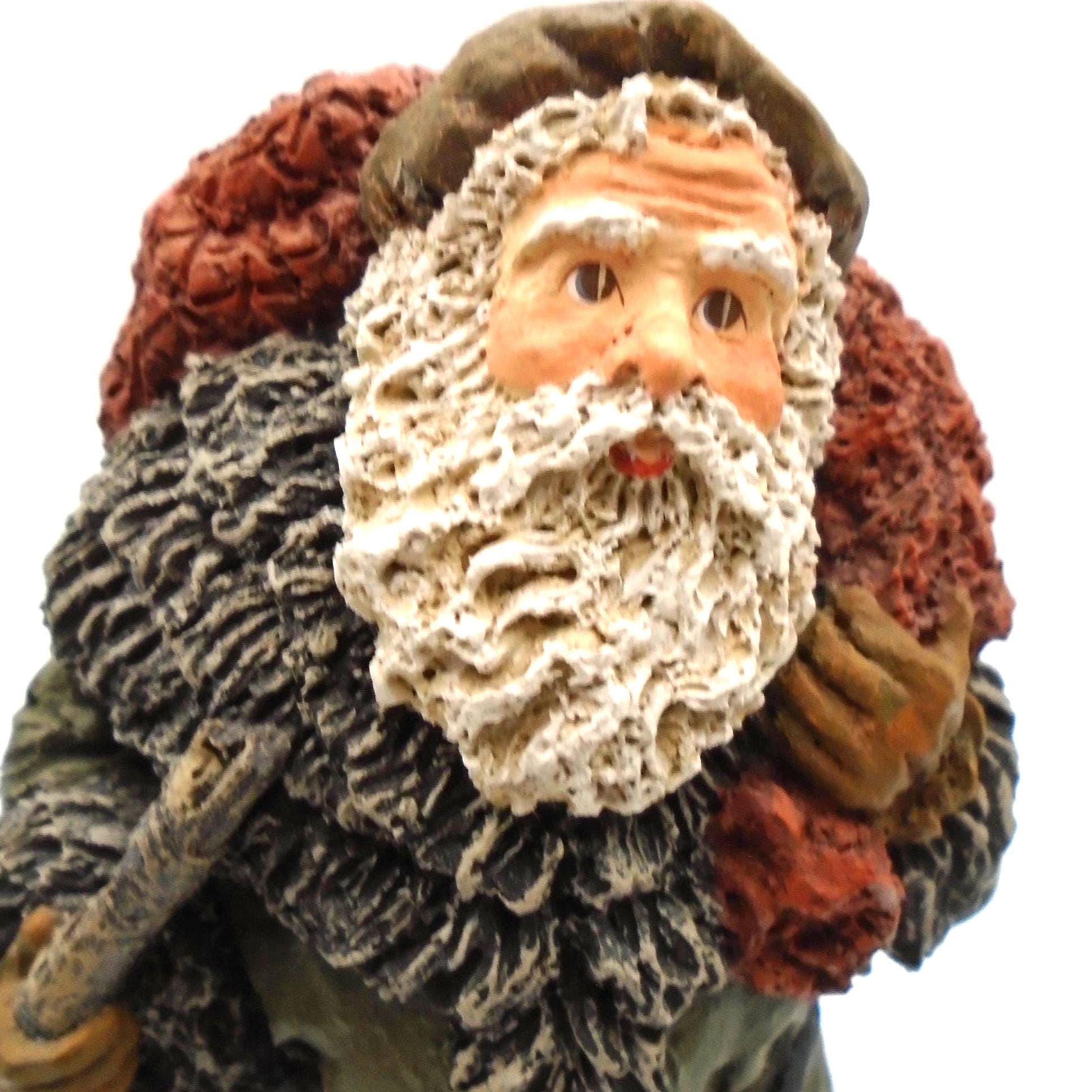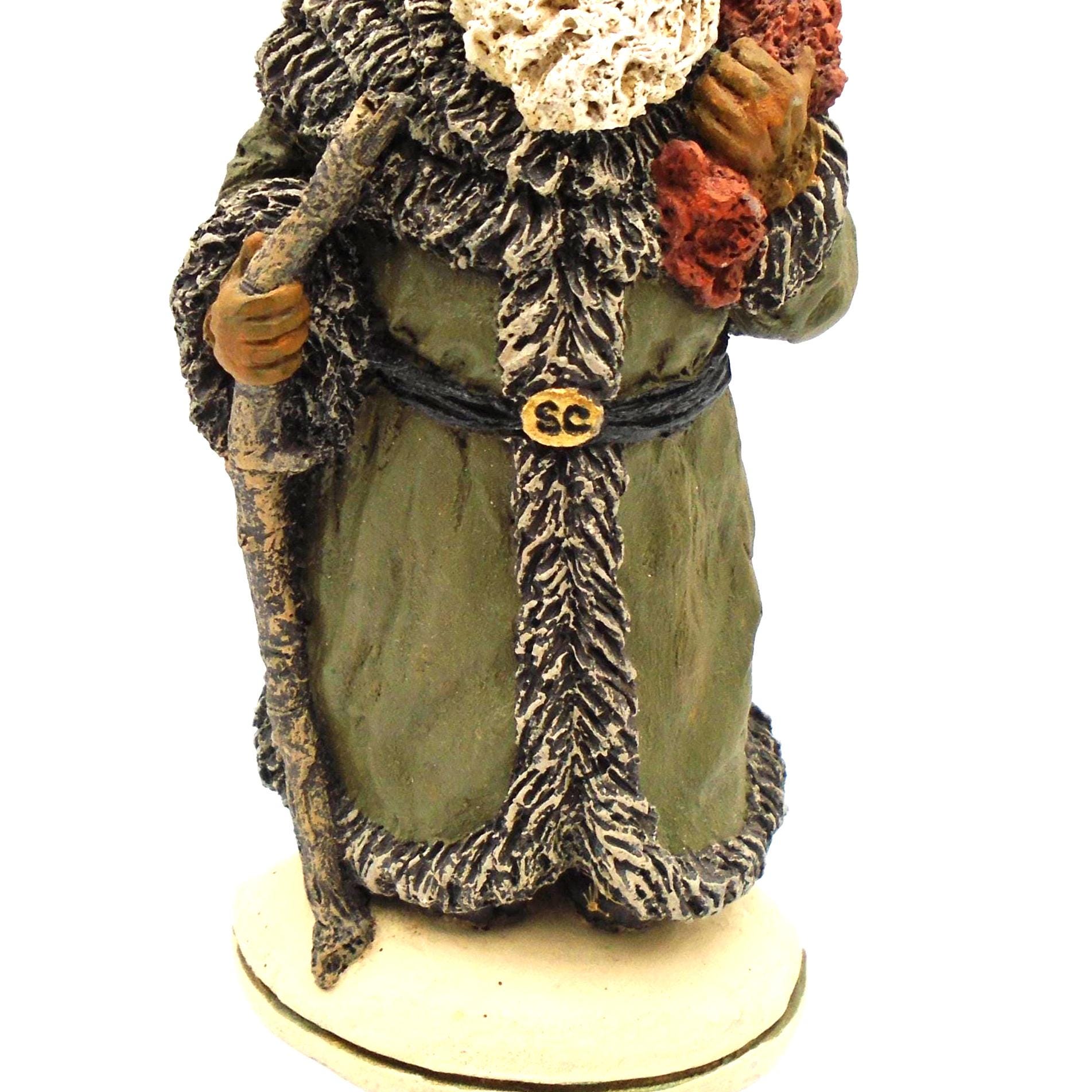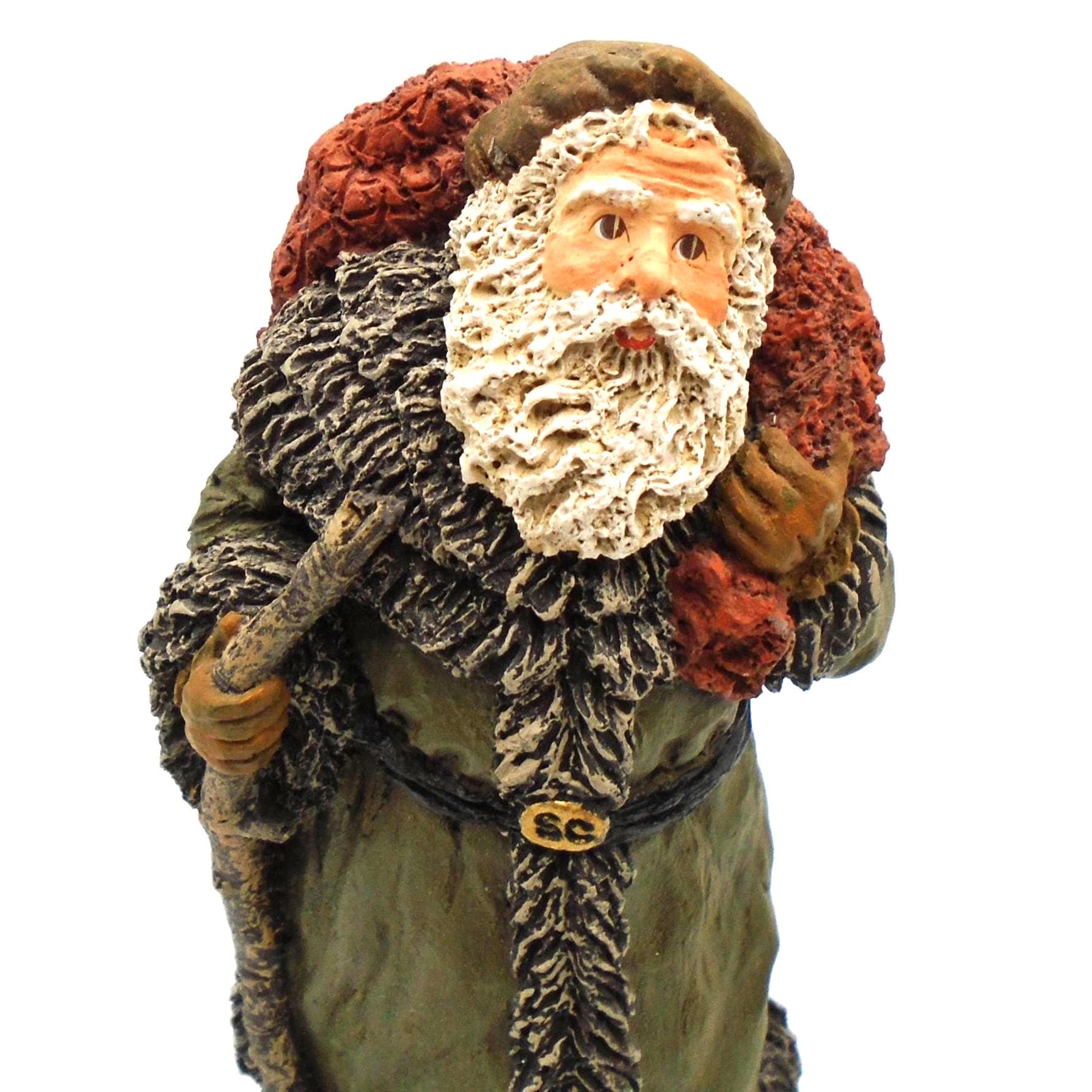 June McKenna limited edition Santa Christmas Folk Art Collectible, "Santa With Walking Stick" 1990, signed and numbered on back. June McKenna is a well known sculptor who has work in museums and the Smithsonian. In the early 1980s she created a hand made line of folk art and Christmas collectibles. They were popular collectibles in the 1980's and 90's with their unique, old fashioned folk art charm.