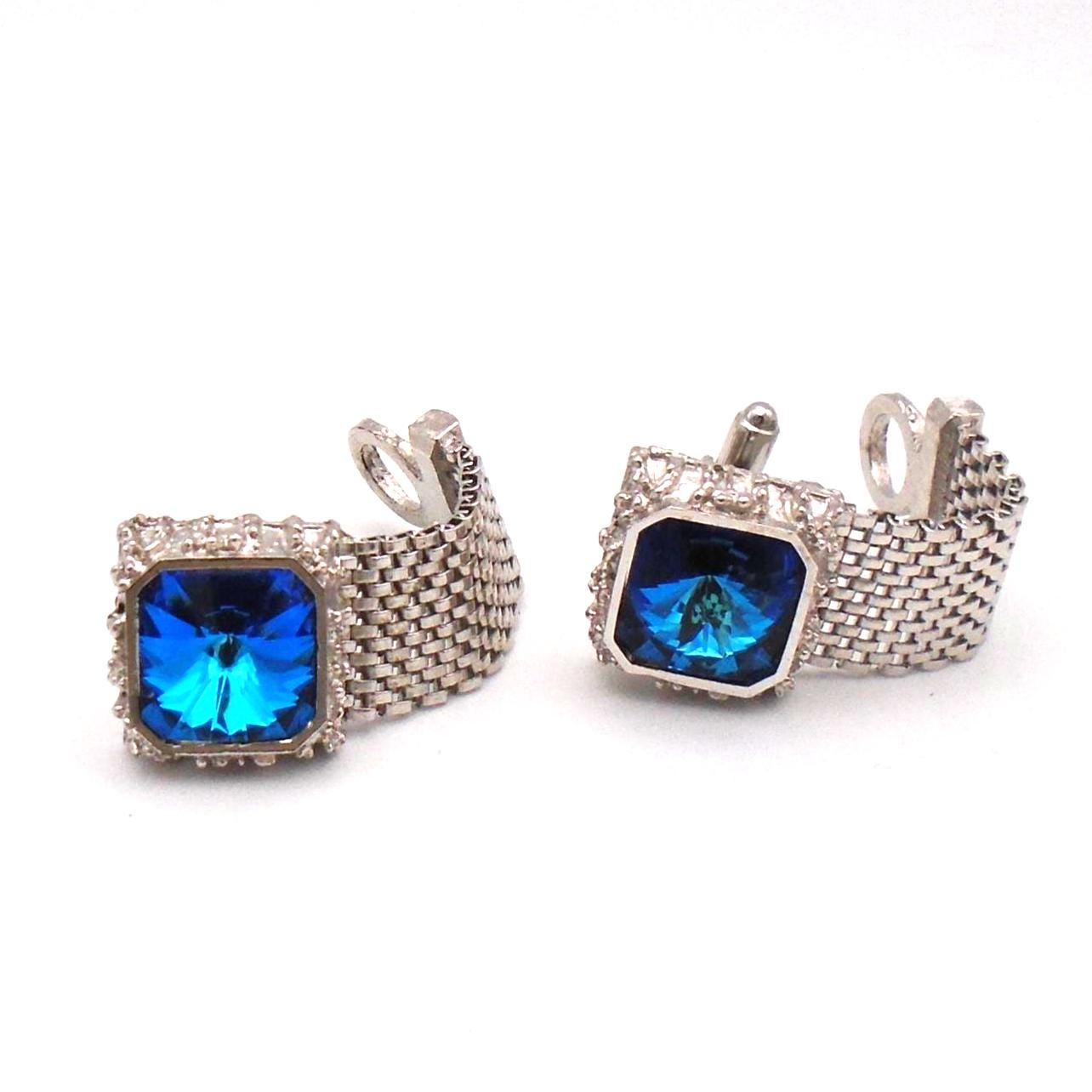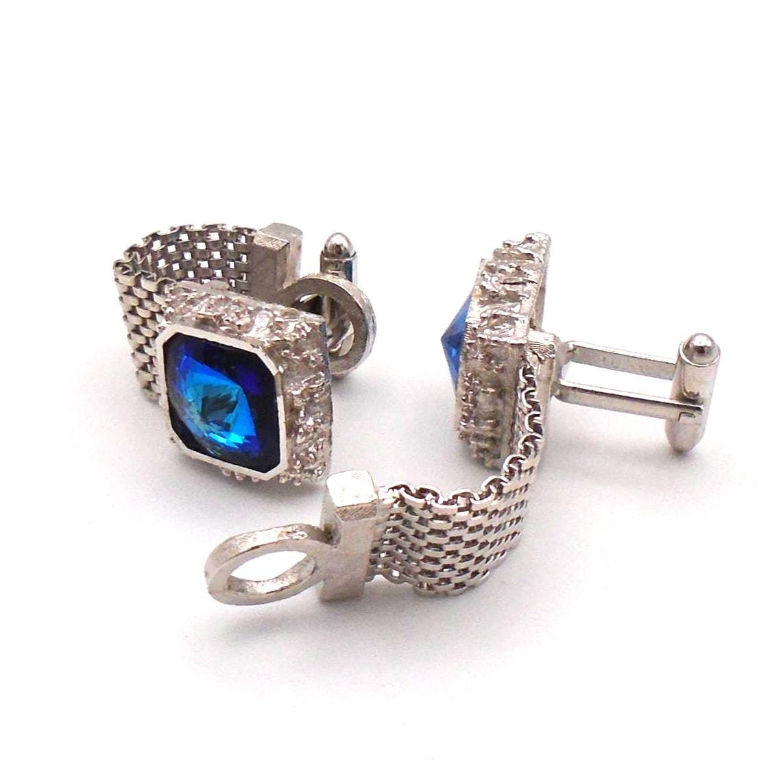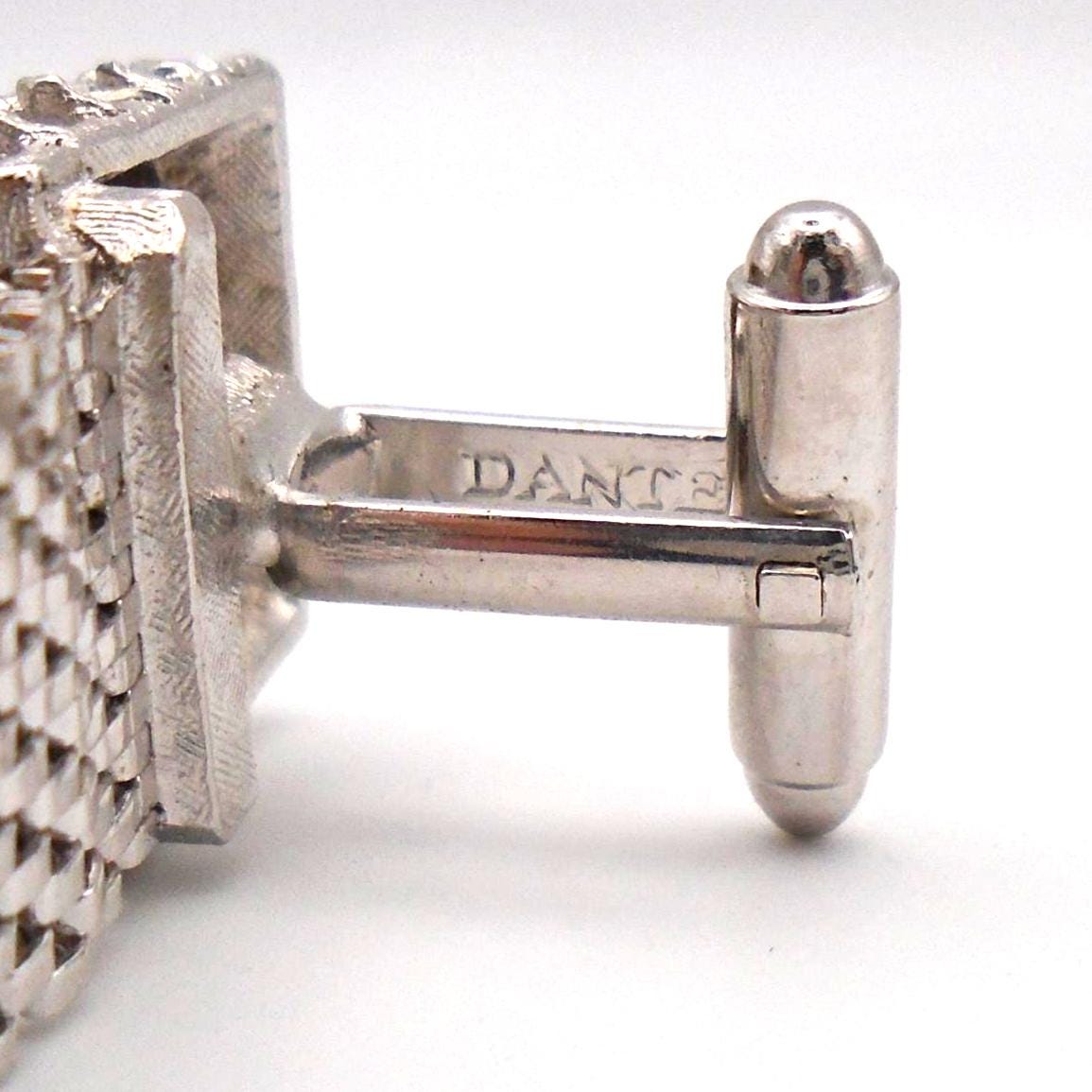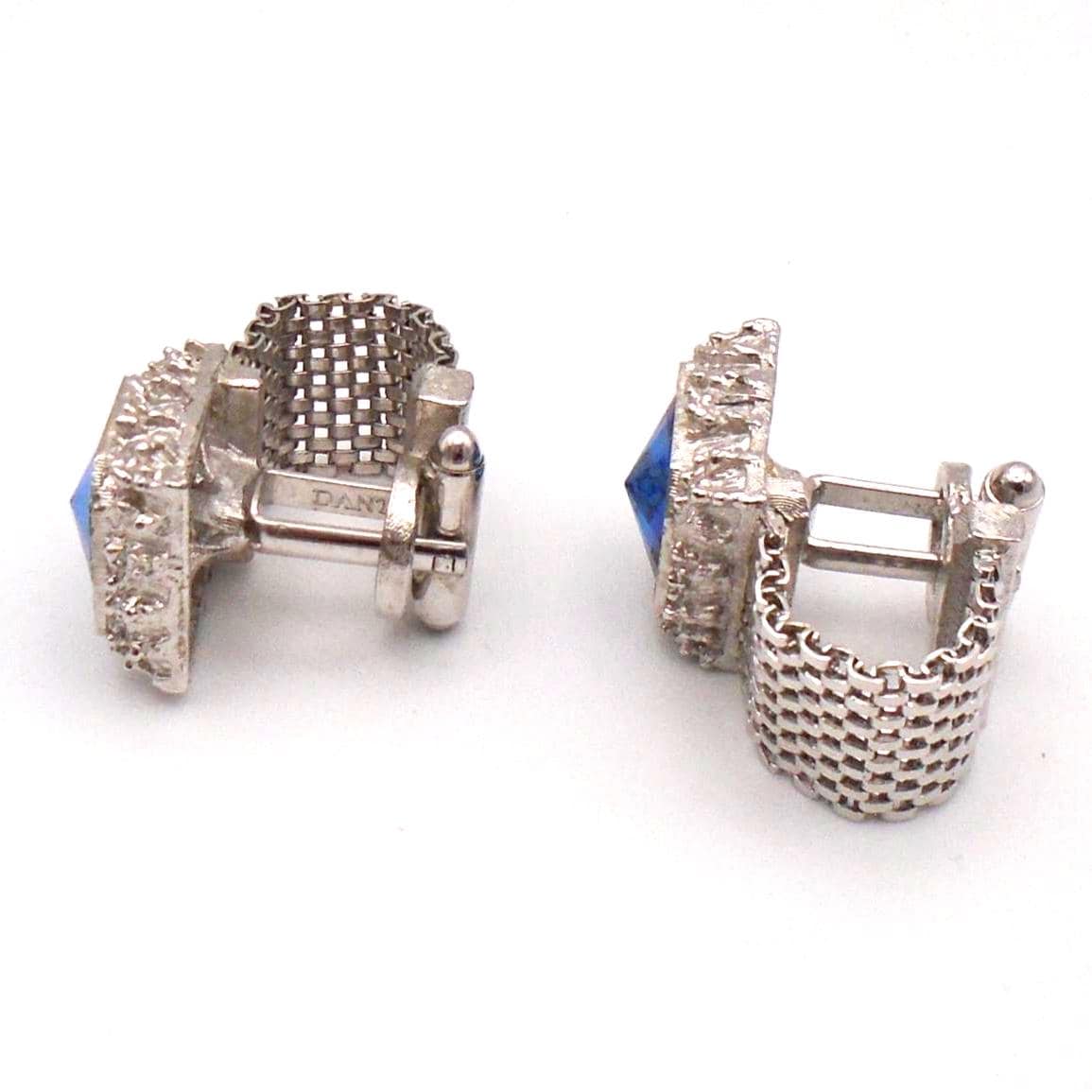 Vintage Dante Blue faux Sapphire, and Silvertone Mesh Cuff Links in excellent vintage condition. Measuring approximately 3/4" square". Marked Dante. Great 60-70's retro look. Dante ceased operations in the 1970's.