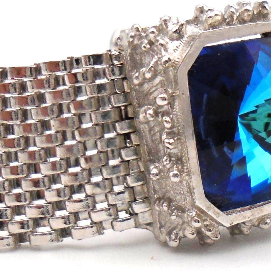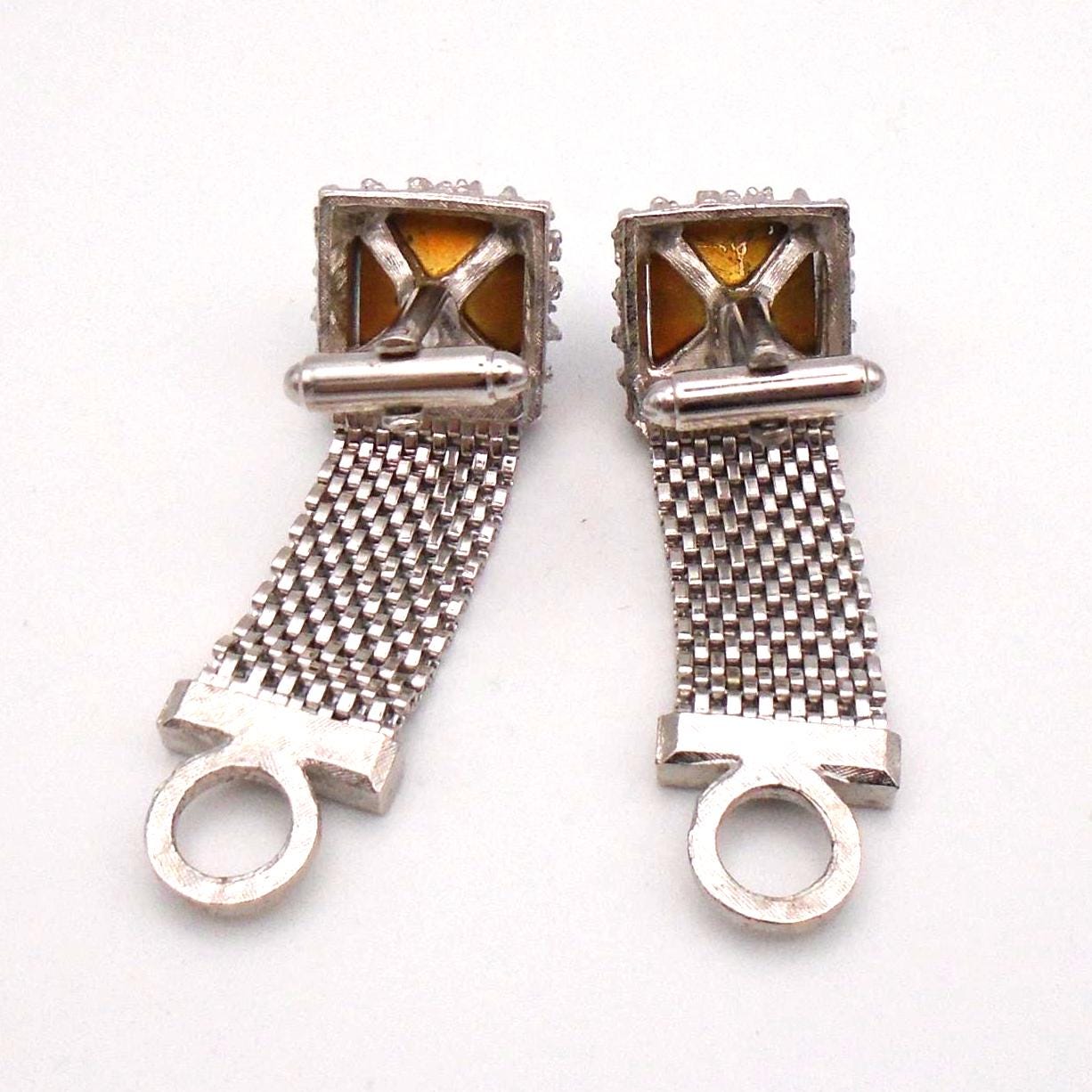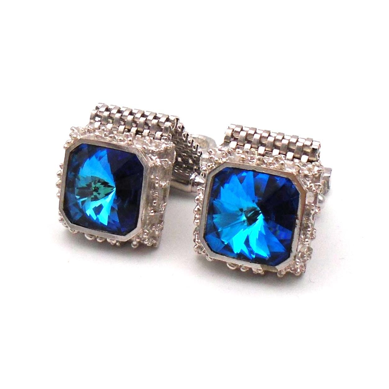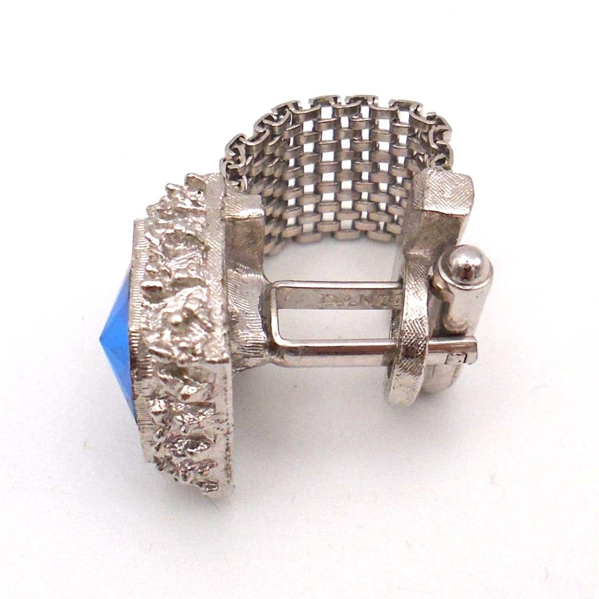 Vintage Dante Blue faux Sapphire, and Silvertone Mesh Cuff Links in excellent vintage condition. Measuring approximately 3/4" square". Marked Dante. Great 60-70's retro look. Dante ceased operations in the 1970's.